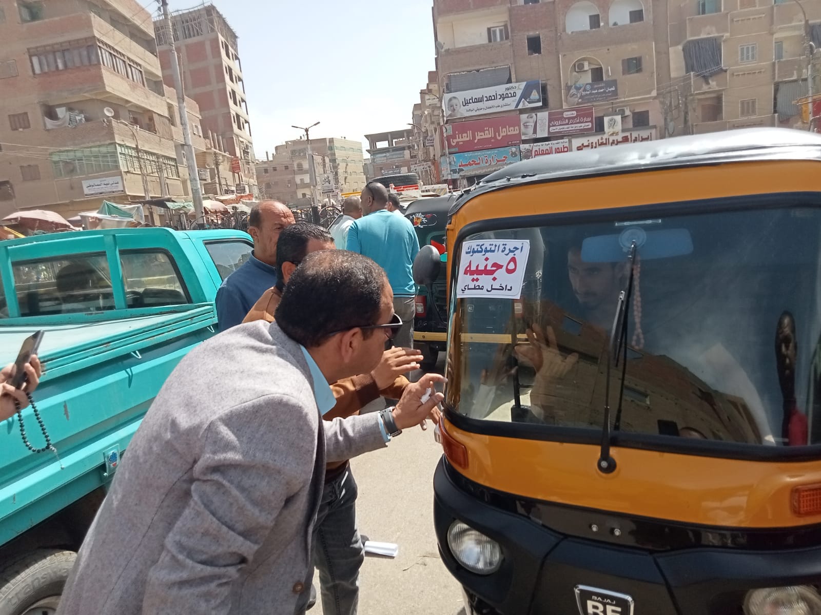 كما قام المهندس حامد فخري رئيس المركز، بالتأكيد على تسعيرة التوكتوك داخل المدينة ، ووضع الإستيكرات بتعريفة الأجرة على التكاتك المختلفة ، و قد رافق رئيس المركز خلال جولته ، فضل الجبالي نائب رئيس المركز ، ومدير ادارة المواقف ، وأكد المهندس حامد فخري على الإلتزام بالتعريفة المقررة ، واتخاذ كافة الإجراءات القانونية ضد السائقين المخالفين ، لضمان عدم استغلال المواطنين.
