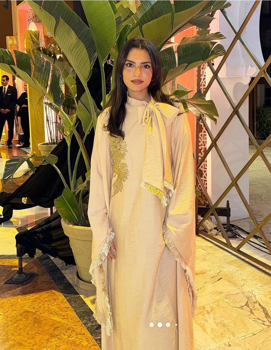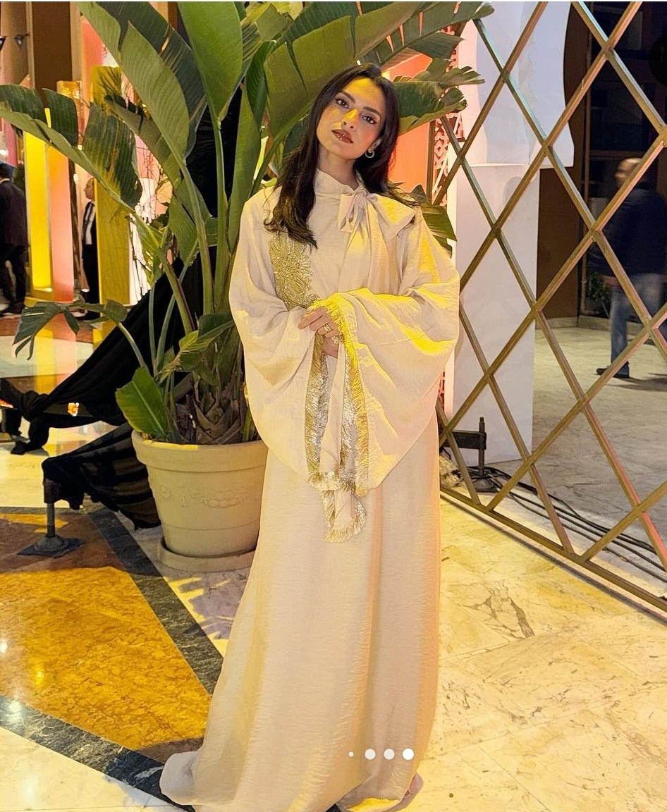 وبدت كارمن سليمان بإطلالة رمضانية تمزج بين الاحتشام والهدوء في آن واحد، تتناغم مع عزومات الإفطار خلال شهر رمضان المبارك، حيث ارتدت عباءة طويلة فضفاضة، بأكمام واسعة، صممت من قماش ناعم باللون اللبيج مع الشراشيب الذهبية من الأطراف.