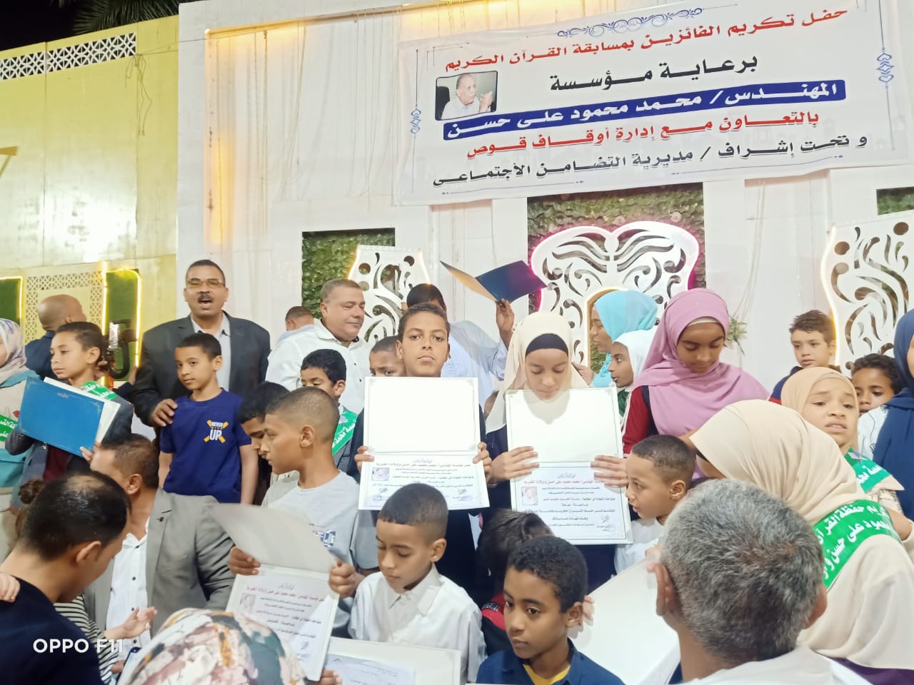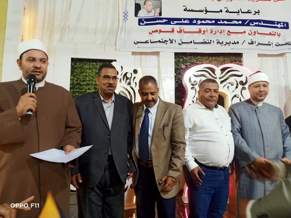 أقامت مؤسسة المهندس محمد محمود على حسن الخيرية ، مساء اليوم الإثنين حفلا دينيا بقاعة صن رايز بمدينة قوص ، كرمت فيه 85 حافظا للقران الكريم بخمس مستويات حفظ هى " حفظ القران الكريم كاملا - نصف القران الكريم - حفظ 10 أجزاء وحفظ 5 أجزاء - حفظ جزء عم " والذين فازو بالمسابقة الدينية التى أعلنت عنها المؤسسة مطلع رمضان الجارى بإشراف إدارة أوقاف قوص والإدارة الأزهرية بحضور النائب معتز محمد محمود عضو مجلس النواب عن دائرة قوص وقفط ونقادة والدكتور ماهر جبر وكيل وزارة الاوقاف بقنا والدكتور قدرى الشعينى رئيس مركز ومدينة قوص .