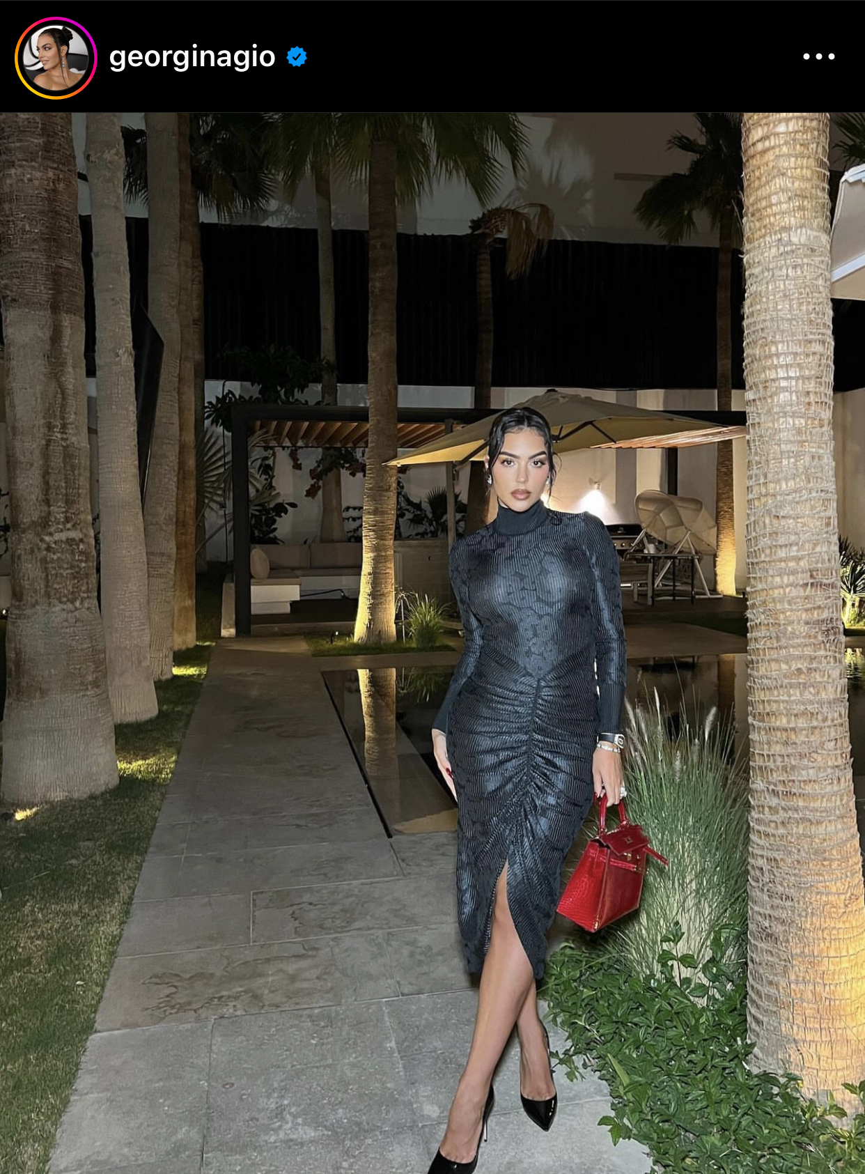 نشرت عارضة الأزياء جورجينا، زوجة اللاعب البرتغالي كريستيانو رونالدو، لقطات من أحدث إطلالاتها، عبر حسابها الشخصي بموقع تبادل الصور والفيديوهات إنستجرام.