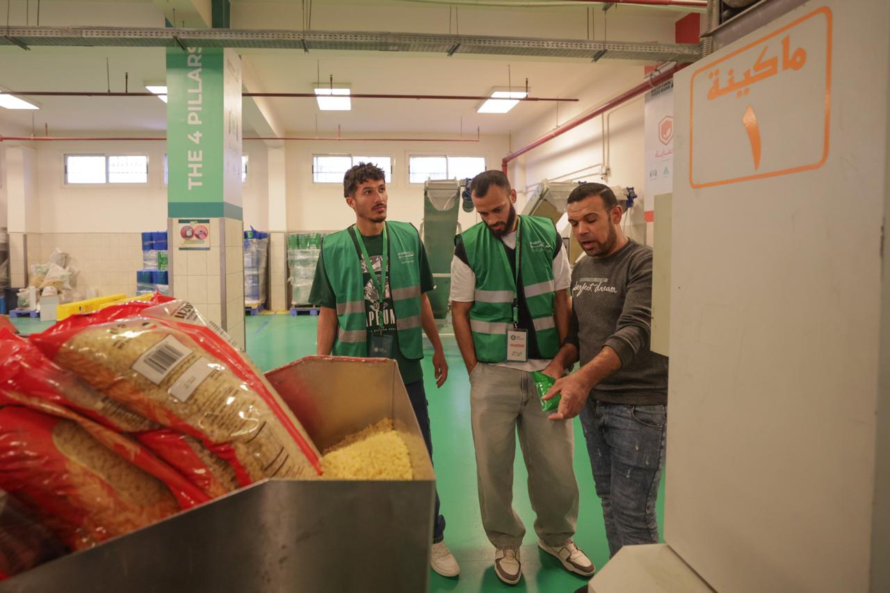 وشرح مصطفى، للفريق كيفية تعبئة كرتونة الطعام والتي تزن حوالي 13 كيلوجرام للكرتونة الواحدة، موضحا لهم أن المنتجات الغذائية التي يتم تعبئتها في الكرتونة تشمل أهم السلع الأساسية التي تحتاجها الأسرة المصرية خلال الشهر الكريم.