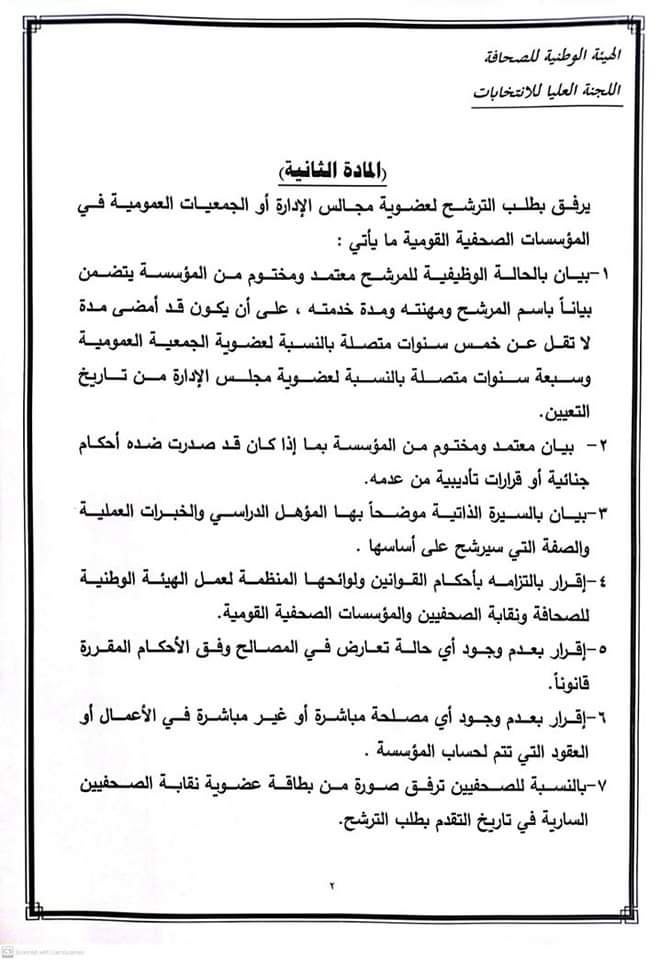 يشترط عدم وجود مصلحة لحساب المؤسسات.. الوطنية للصحافة تؤكد ضوابط الترشح