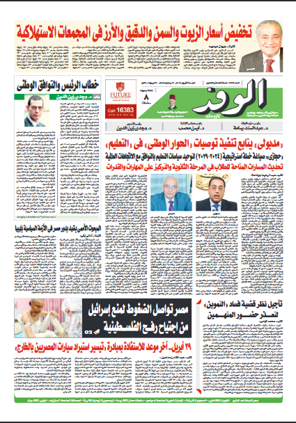 تنشر جريدة الوفد في عددها الصادر، غدًا الجمعة، الكثير من الموضوعات والتقارير الإخبارية المهمة، أبرزها: "تخفيض أسعار الزيوت والسمن والدقيق والأرز في المجمعات الاستهلاكية".