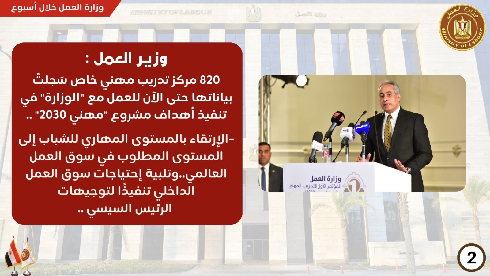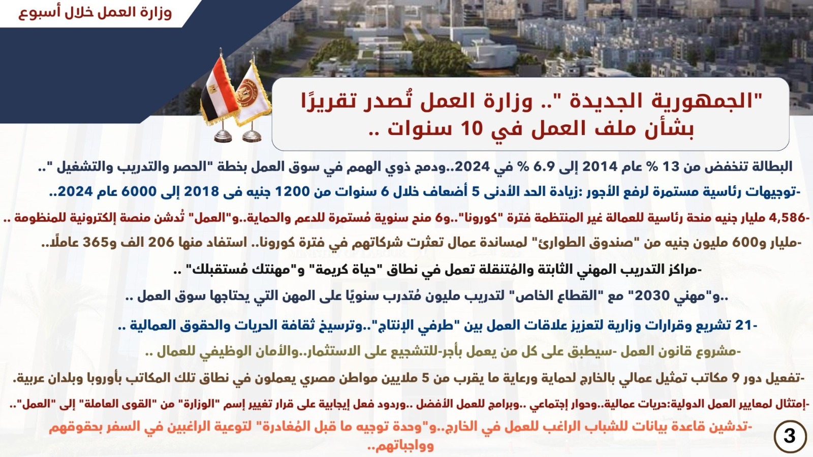 وتنشر "الوفد" في هذا التقرير نشاط وزارة العمل بالأسبوع الأخير.