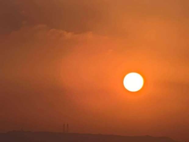 5. الشمس تطلع صبيحتها حمراء ضعيفة ليس لها شعاع صافية ، كما القمر البدر.