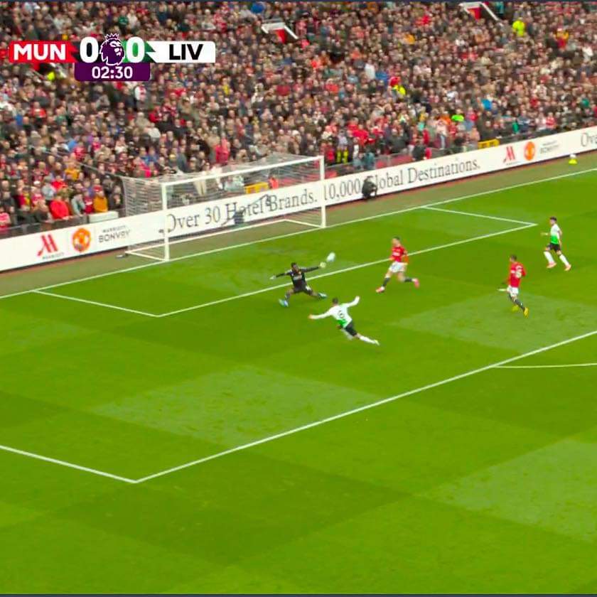أحرز الكولومبي لويس دياز جناح ليفربول الهدف الأول في الدقيقة 23، بعد كرة عرضية من ركلة ركنية وصلت إلى نونيز الذي حولها برأسه بشكل جانبي لتصل إلى دياز الذي يسددها ولا اروع في شباك مانشستر يونايتد يفشل اونانا في التصدي لها.
