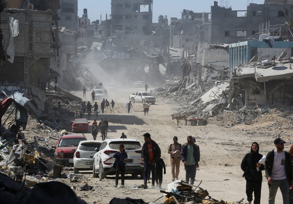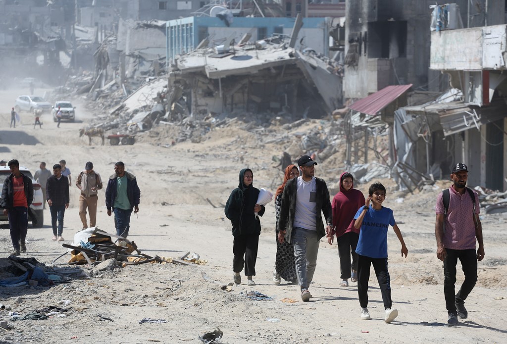 فلسطينيون يتفقدون الدمار بعد انسحاب بعض الجنود الإسرائيليين.. صور