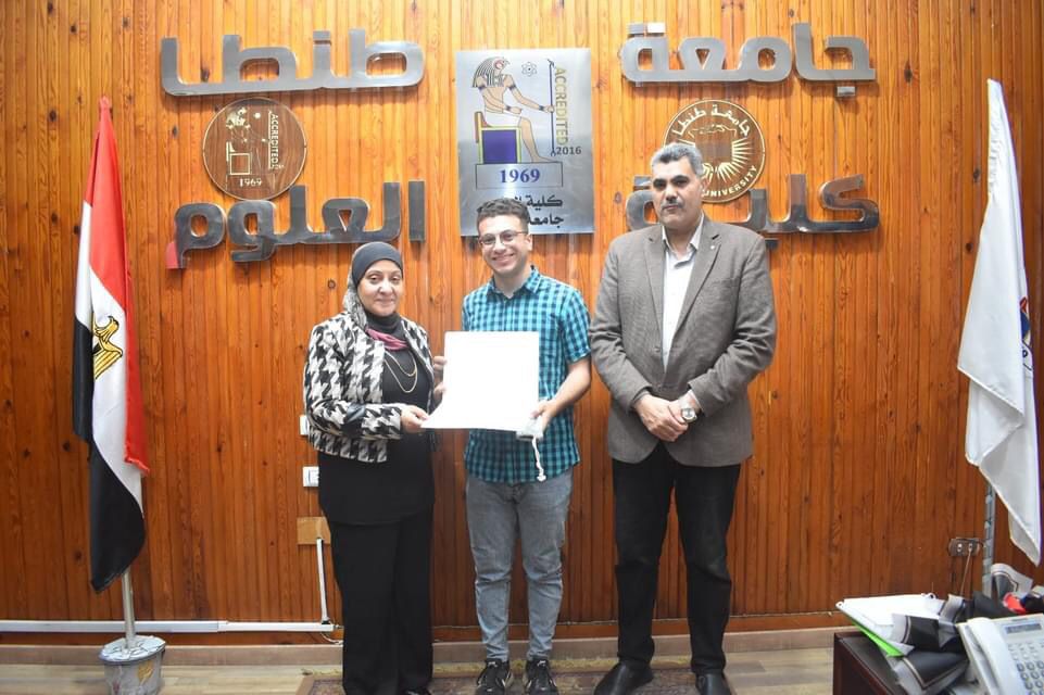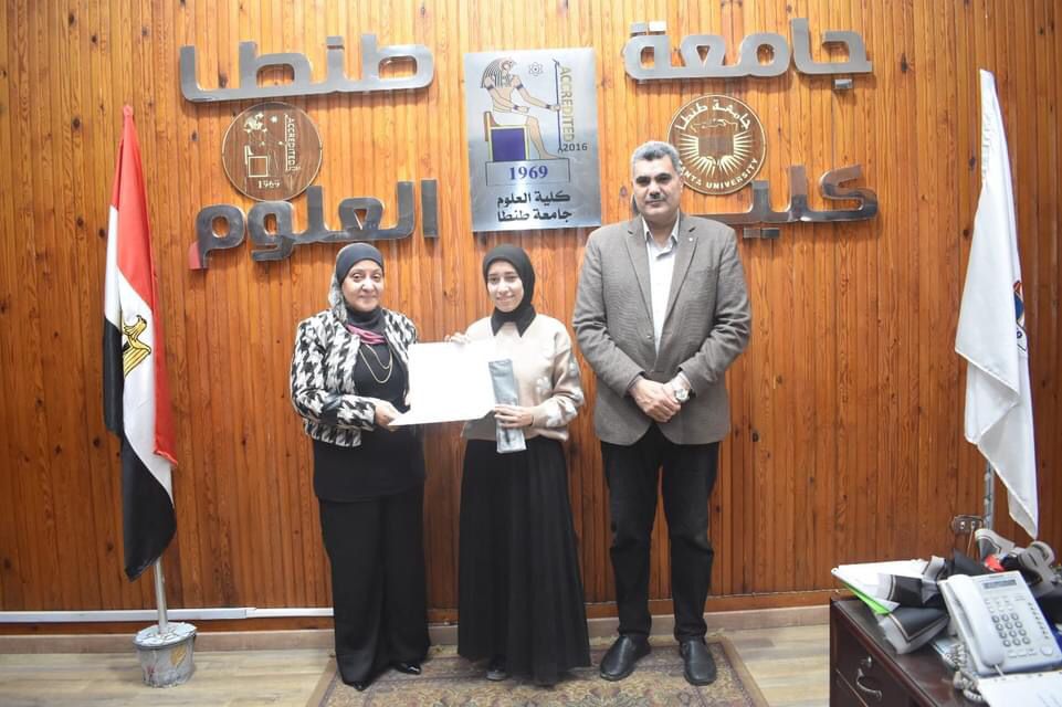قامت الدكتورة نهال عاطف صلاح الدين القائم بأعمال عميد كلية العلوم جامعة طنطا وبرعاية الدكتور محمود ذكى رئيس جامعة طنطا، بتكريم الطالب كريم هاني الخولي المقيد بالمستوى الثالث برنامج التقنية الحيوية الصناعية ، والطالبة ألاء السيد عثمان بالمستوي الرابع ميكروبيولوجي.