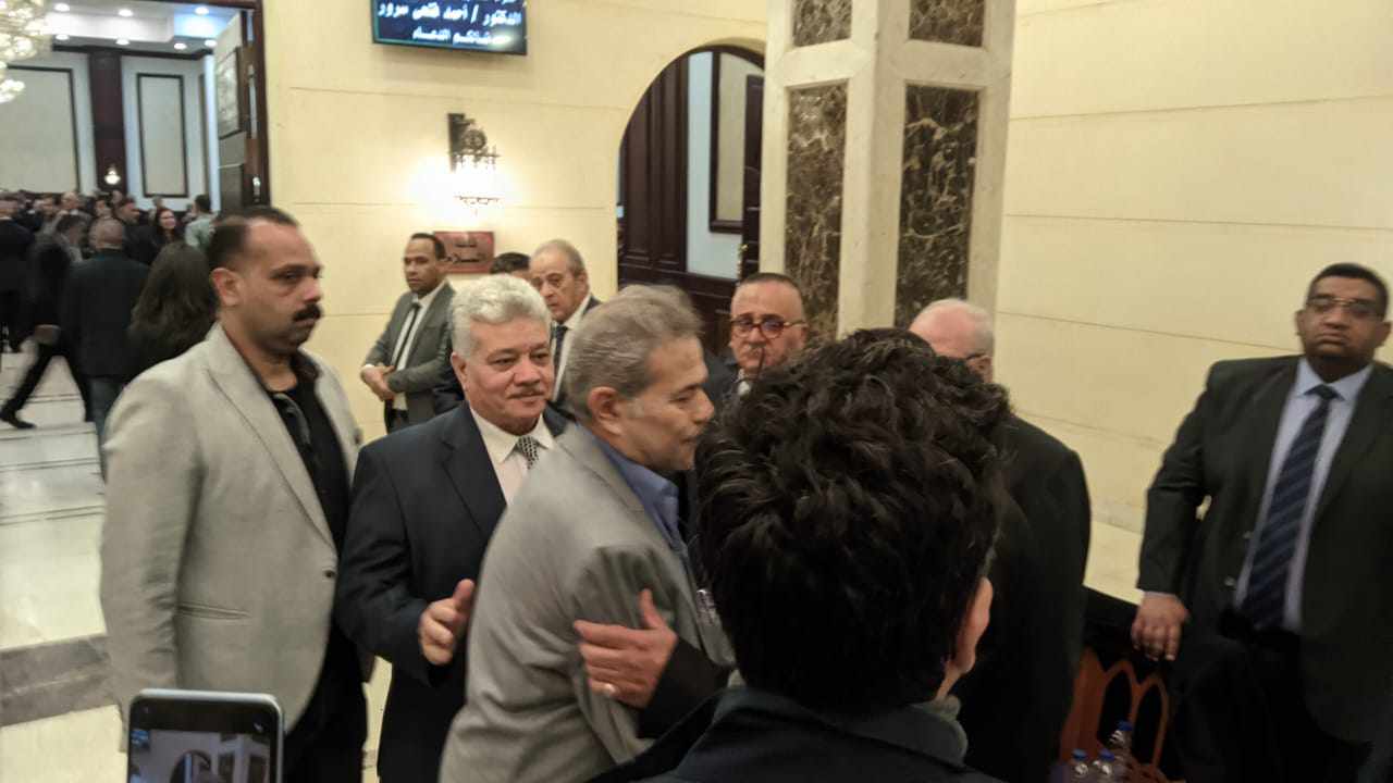 توفيق عكاشه يظهر في عزاء أحمد فتحي سرور