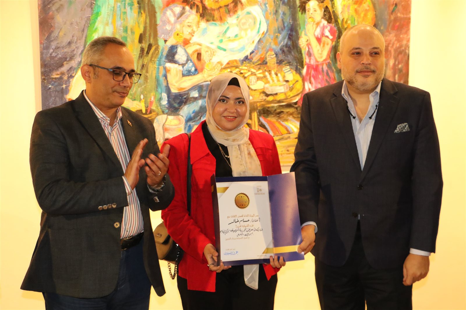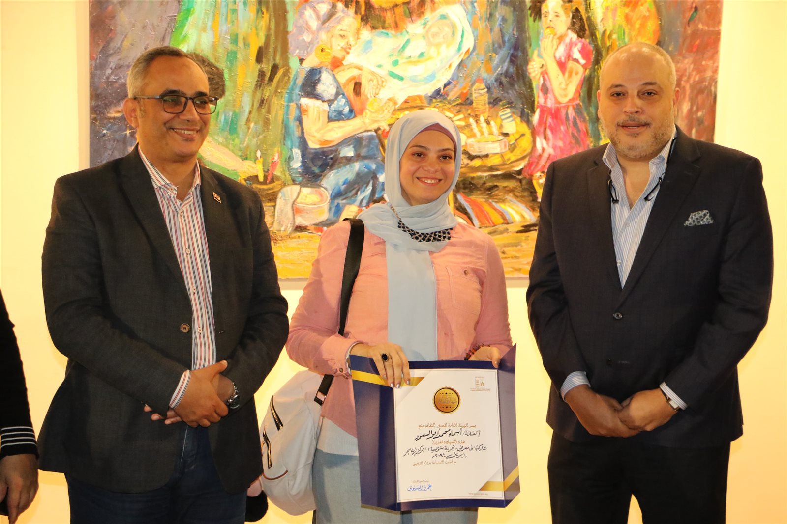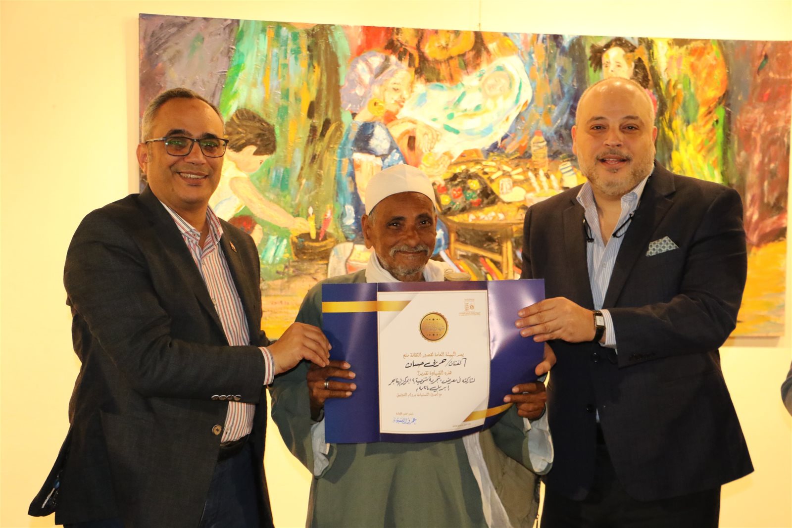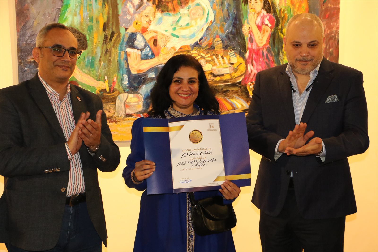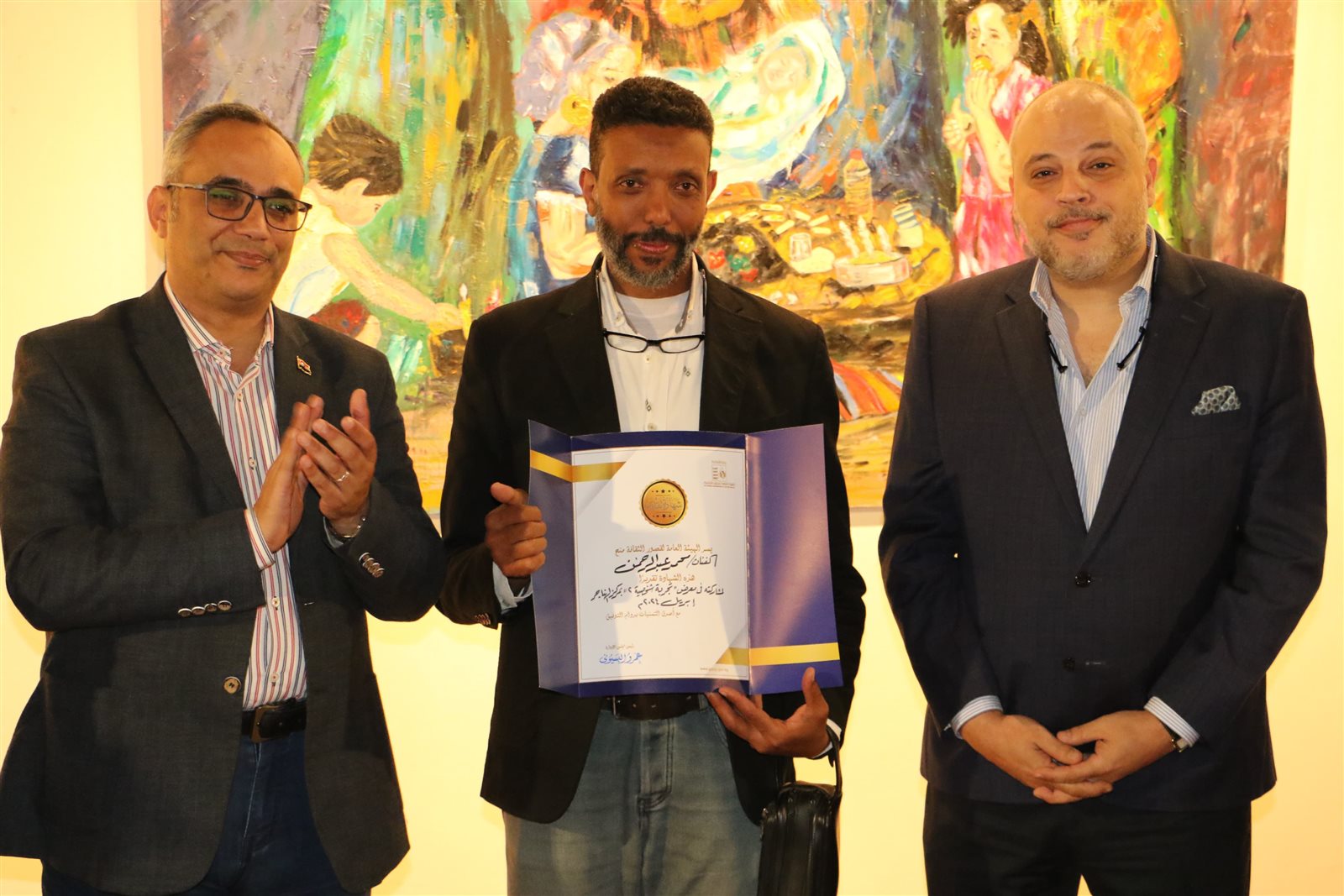 وفي الختام قام رئيس الهيئة، ورئيس الإدارة المركزية للشئون الفنية، ومدير عام الفنون التشكيلية، بتكريم الفنانين المشاركين في المعرض.