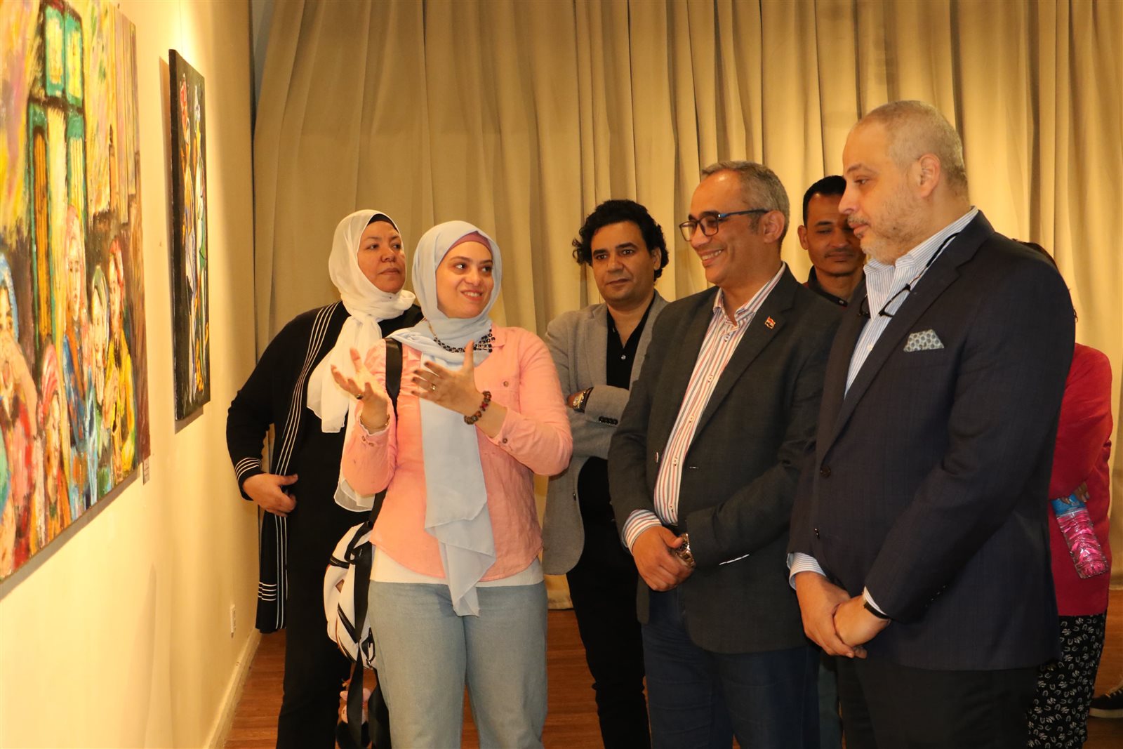 استهلت الفعاليات بتفقد المعرض الفني الذى يضم 58 عملا فنيا، لعشرة فنانين مبدعين غير دارسين للفن التشكيلي، من مختلف الأجيال والاتجاهات والمدارس الفنية وهم بهاء خاطر، إيمان عاطف، أسماء محمد، مريم رضا، محمد عبد الرحمن، هاني رمضان، حربي حسان، محمود عرفة، سمير العدوي، حسام خالد.