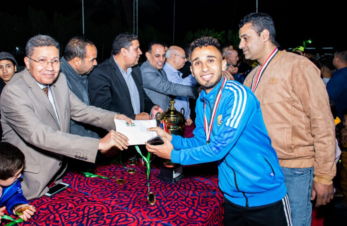 عقب نهاية اللقاء قام عبدالله حمد يرافقه رئيس المركز ونائبه ورئيس الحزب بالمحافظة والسكرتير العام بتوزيع الجوائز الفردية على أفضل لاعب محمد عبد المنعم وأفضل حارس مرمى يوسف دومينيك ولاعبان فازا بلقب هداف البطولة برصيد 14 هدف لكل منهما وهما اللاعب احمد جمال واللاعب احمد جمعة كما تم تسليم كأس البطولة وميداليات المركز الأول وأيضا الجائزة المالية المخصصة وقيمتها 20 ألف جنيها للفائز بالبطولة، ثم جائزة المركز الثاني وقيمتها عشرة آلاف جنيها والميداليات لأصحاب المركز الثاني، كما تم تكريم اللجنة المنظمة وعدد من الشخصيات بتقديم ميداليات الدروة لهم.