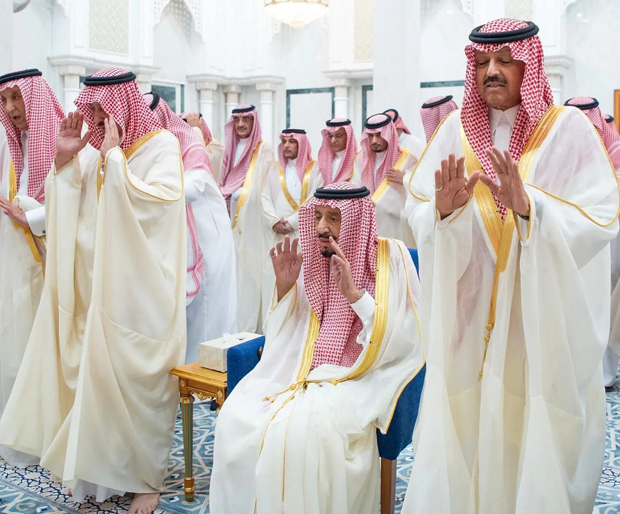 وعقب الصلاة، تلقى خادم الحرمين الشريفين، التهاني والتبريكات من الأمراء والمسؤوليين بمناسبة عيد الفطر المبارك.