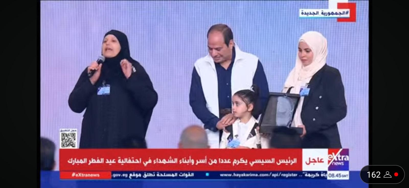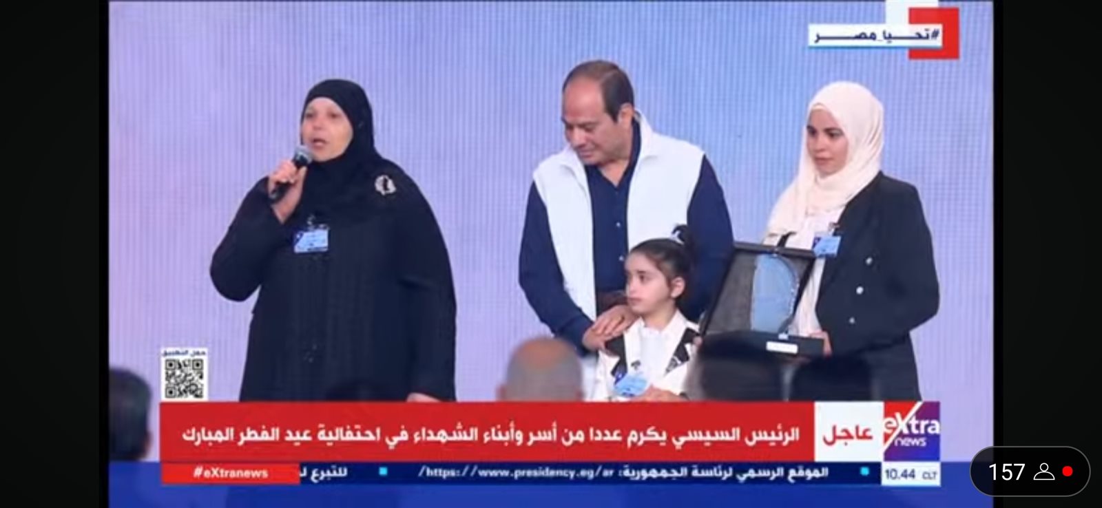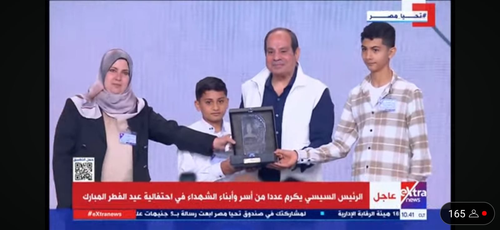 كرم الرئيس عبدالفتاح السيسي عددا من أبناء شهداء الجيش والشرطة، خلال احتفال عيد الفطر مع أبناء شهداء الجيش والشرطة المقام في العاصمة الإدارية الجديدة، ويشارك في الحفل عائلات فلسطينية من غزة.