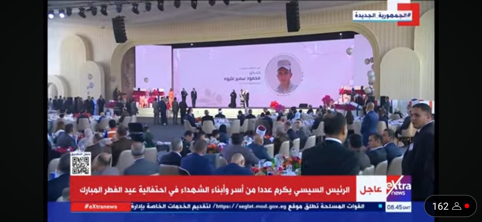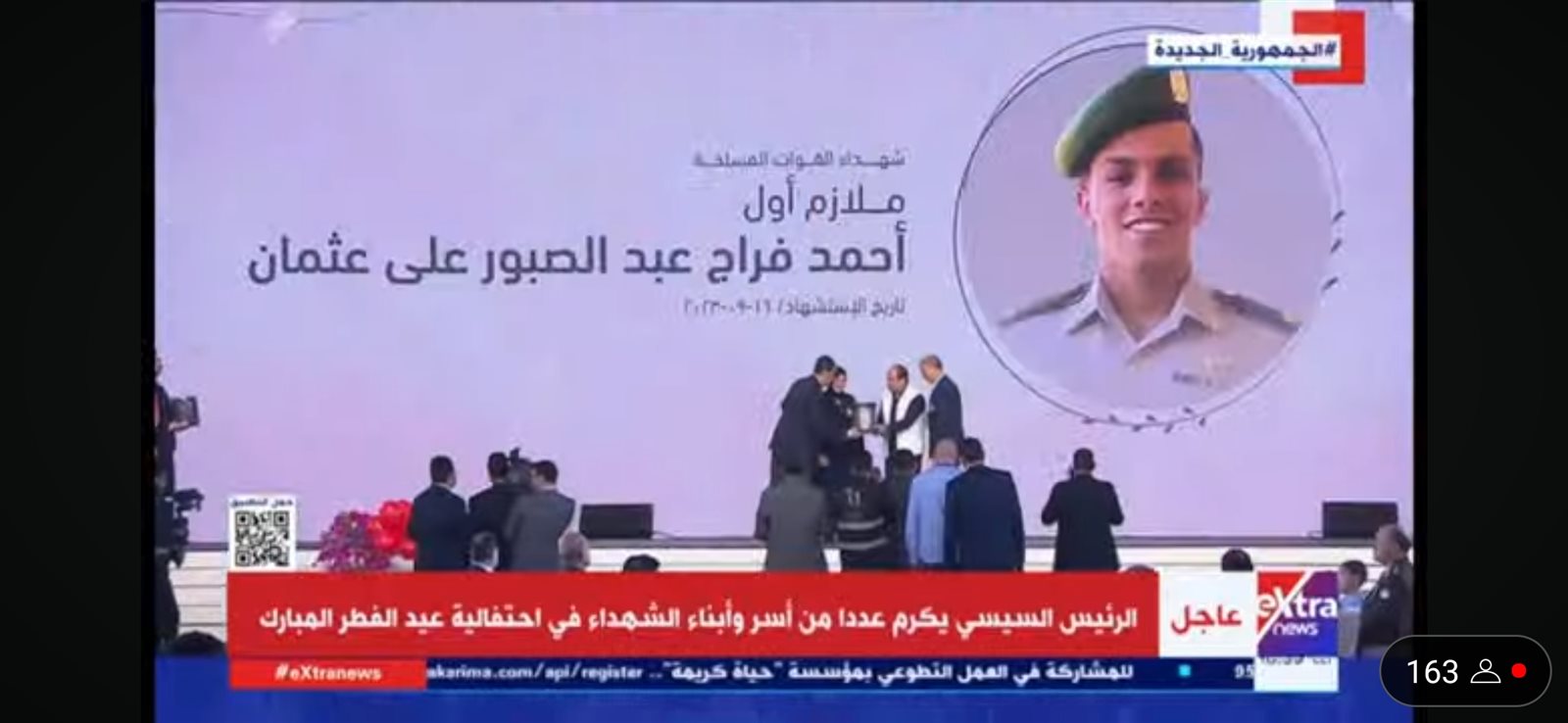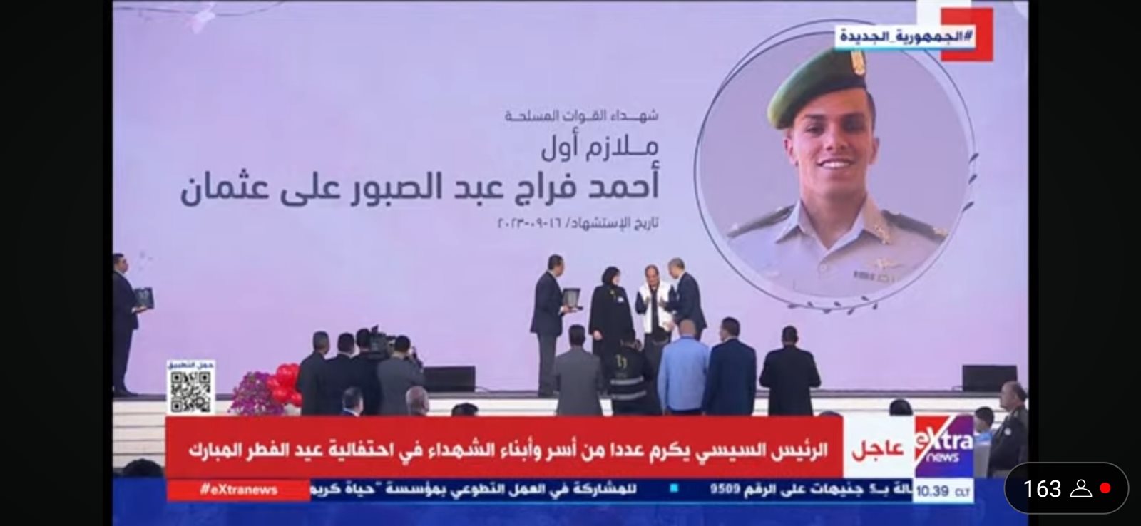 كرم الرئيس عبدالفتاح السيسي عددا من أبناء شهداء الجيش والشرطة، خلال احتفال عيد الفطر مع أبناء شهداء الجيش والشرطة المقام في العاصمة الإدارية الجديدة، ويشارك في الحفل عائلات فلسطينية من غزة.