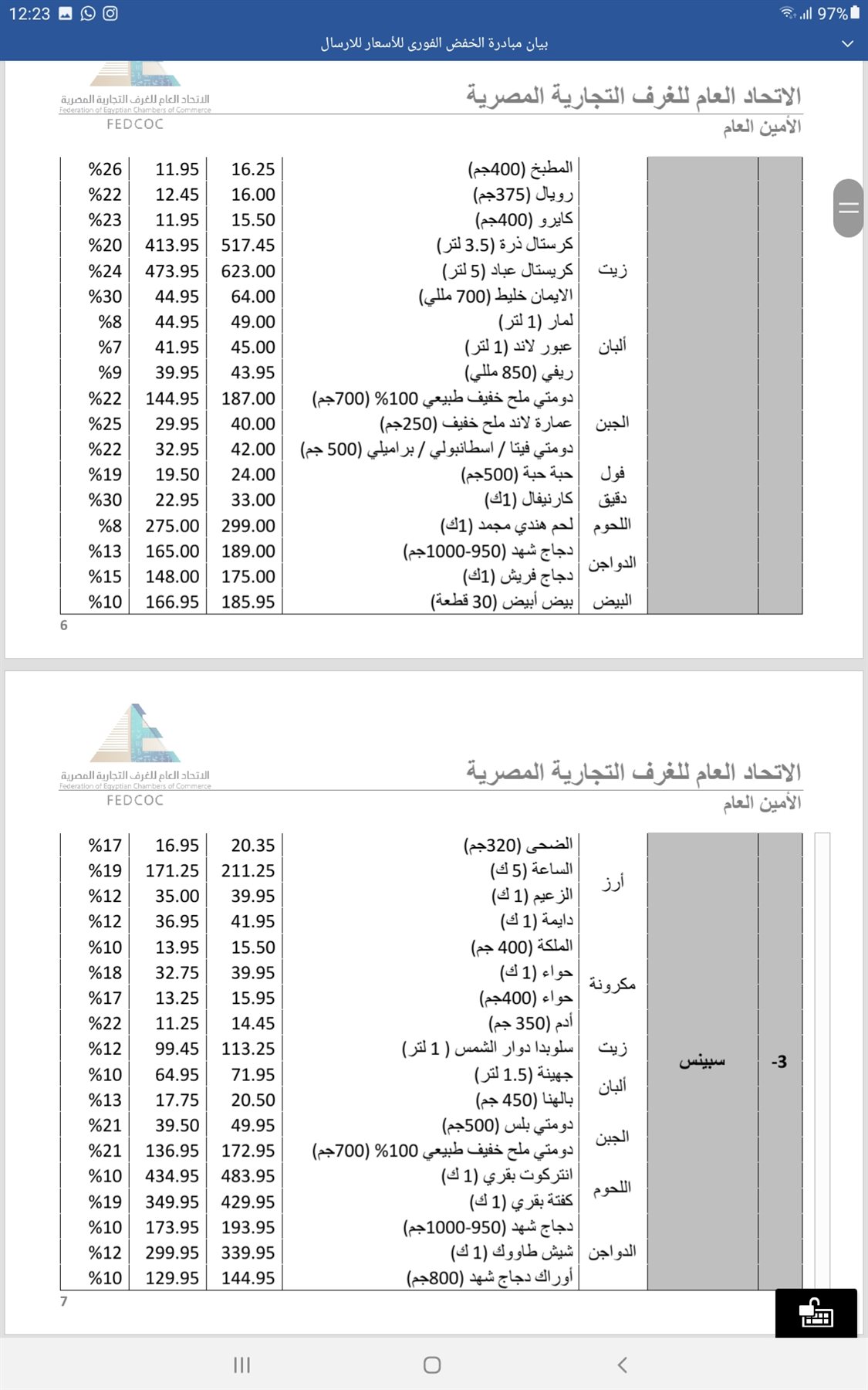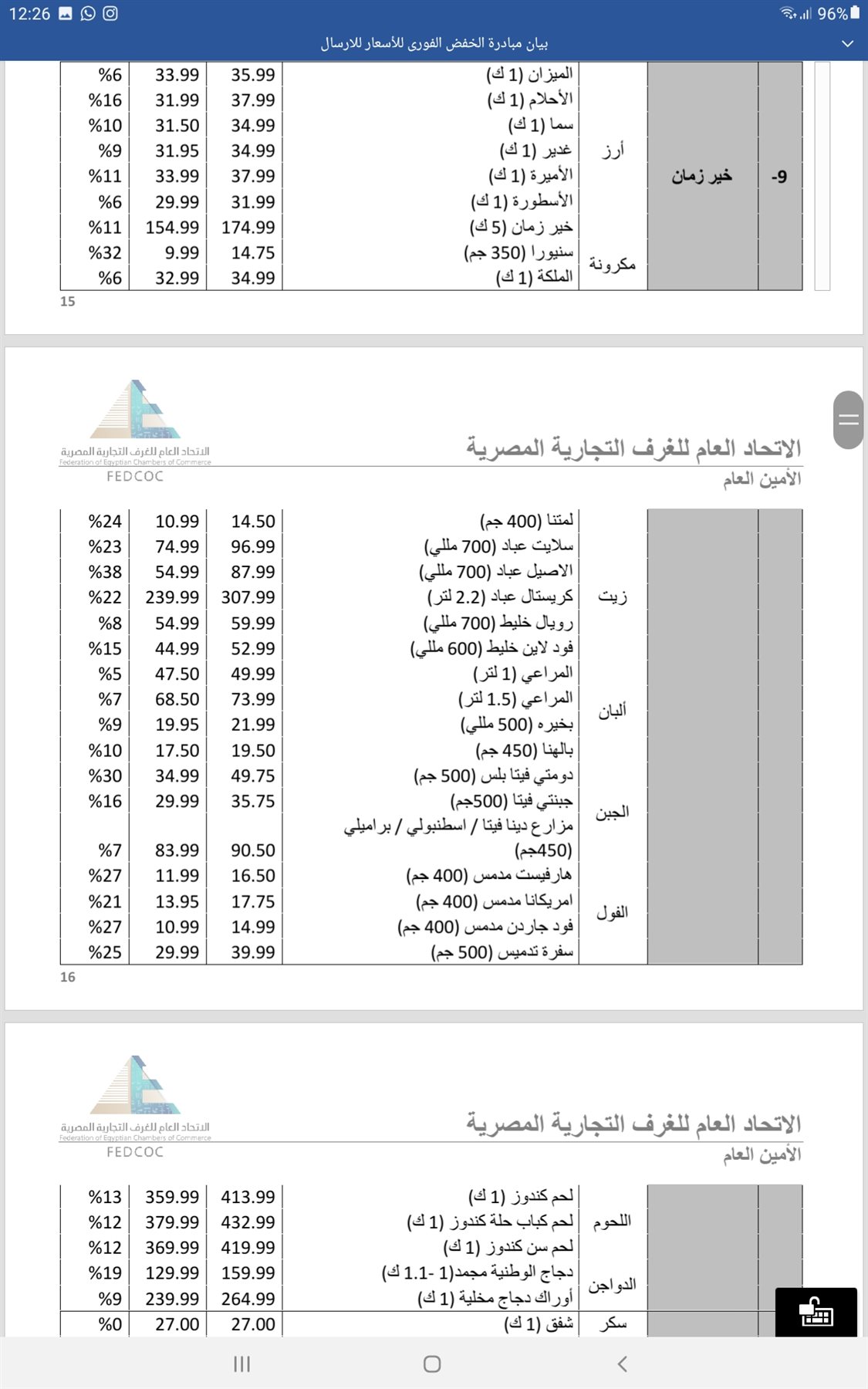 اعلن الاتحاد العام للغرف التجارية برئاسة أحمد الوكيل التزام السلاسل التجارية بمبادرة تخفيض الأسعار "الفورى" الذى أعلن عنها الأسبوع الماضي