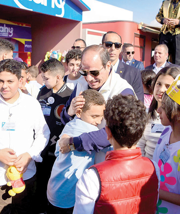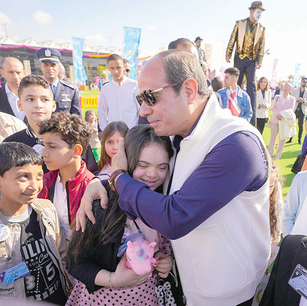 .. أما المشهد الأكثر روعة فكان اصطحاب الرئيس السيسى للأطفال فى الحدائق الملحقة بالمركز الثقافى والتى تزينت بزينات مختلفة، وتجهيزها بالألعاب المختلفة التى تضفى البهجة والسرور فى نفوس الأطفال، إضافة إلى قيام الرئيس بتوزيع الحلوى على كل الأطفال الذين شهدوا الاحتفال ومن خلال حوارات سريعة مع عدد من الأطفال أعربوا جميعاً عن سعادتهم البالغة وشعورهم بالبهجة المتزايدة، رغم العيون الممتلئة بالإصرار والتحدى لاستكمال مسيرة آبائهم فى تقديم أرواحهم فداء لمصر العظيمة.