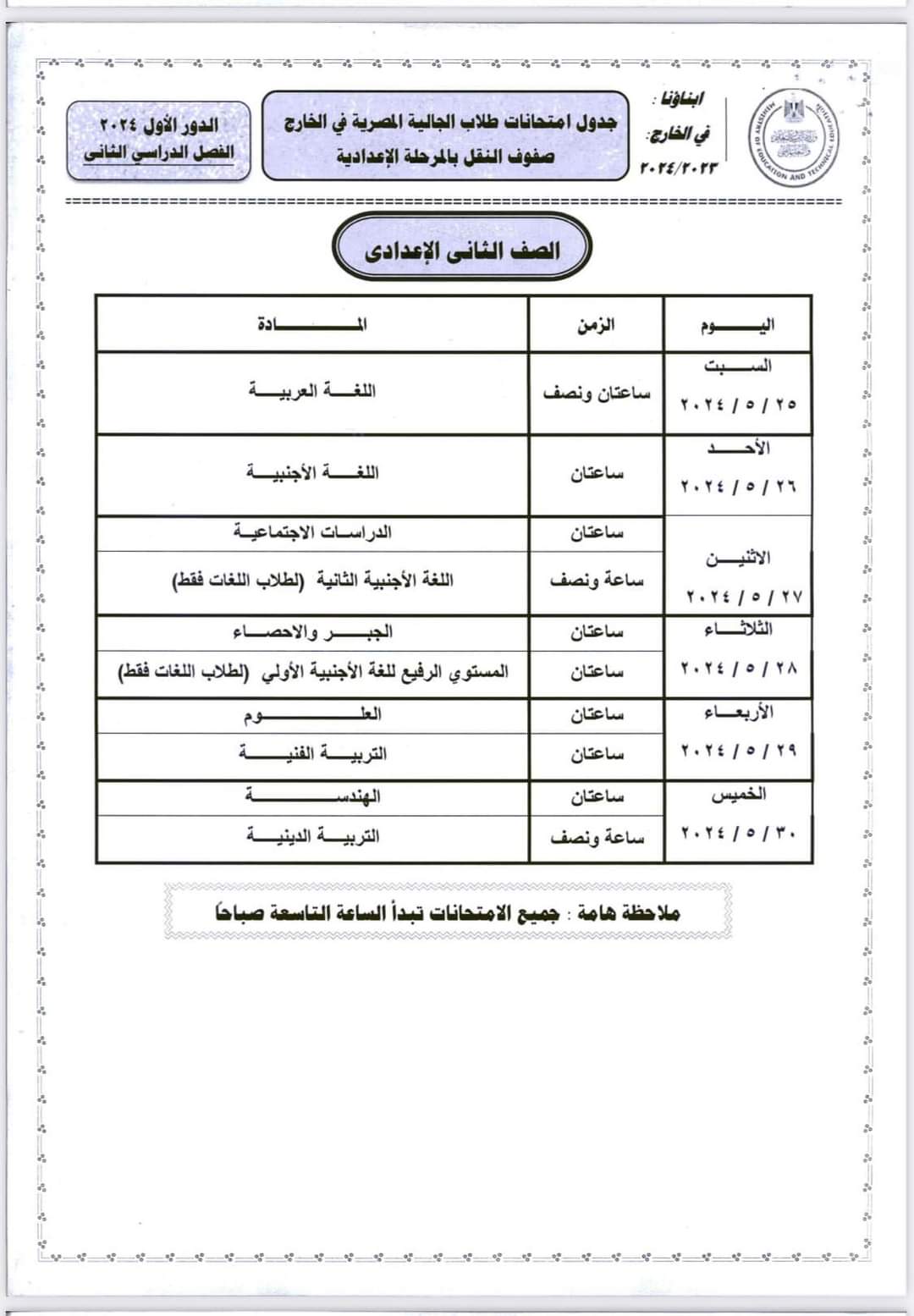 أبناؤنا في الخارج| جدول امتحانات الصف الثاني الإعدادى 2024