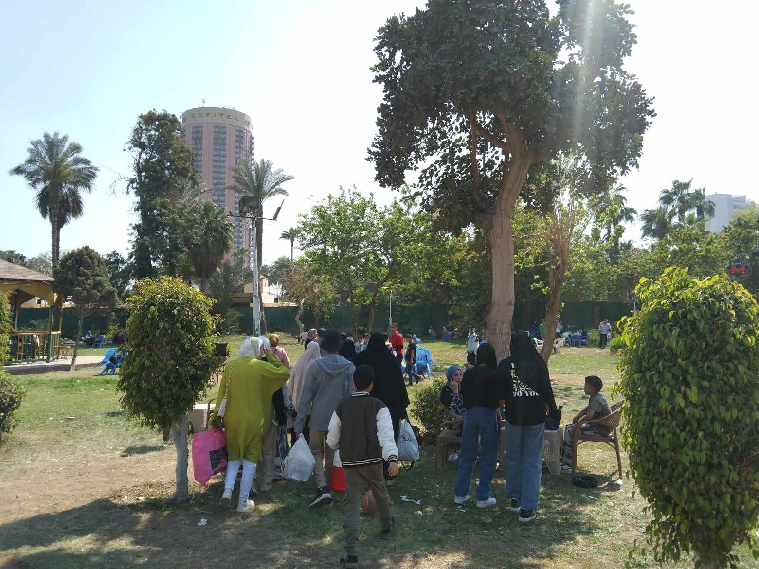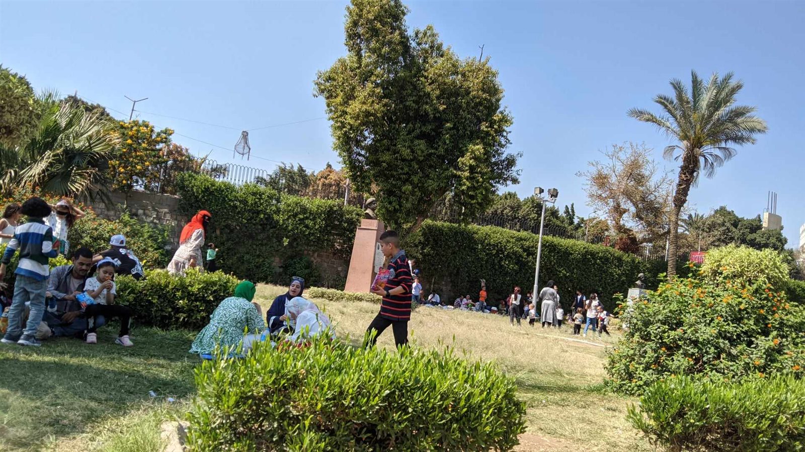 وحرص البعض الآخر على الجلوس على أرضية الحديقة لتناول وجبات الإفطار والغداء، وسط هدوء وتواجد أمني لمنع أي مشاغبات قد تحدث أو حالات تحرش بالفتيات.