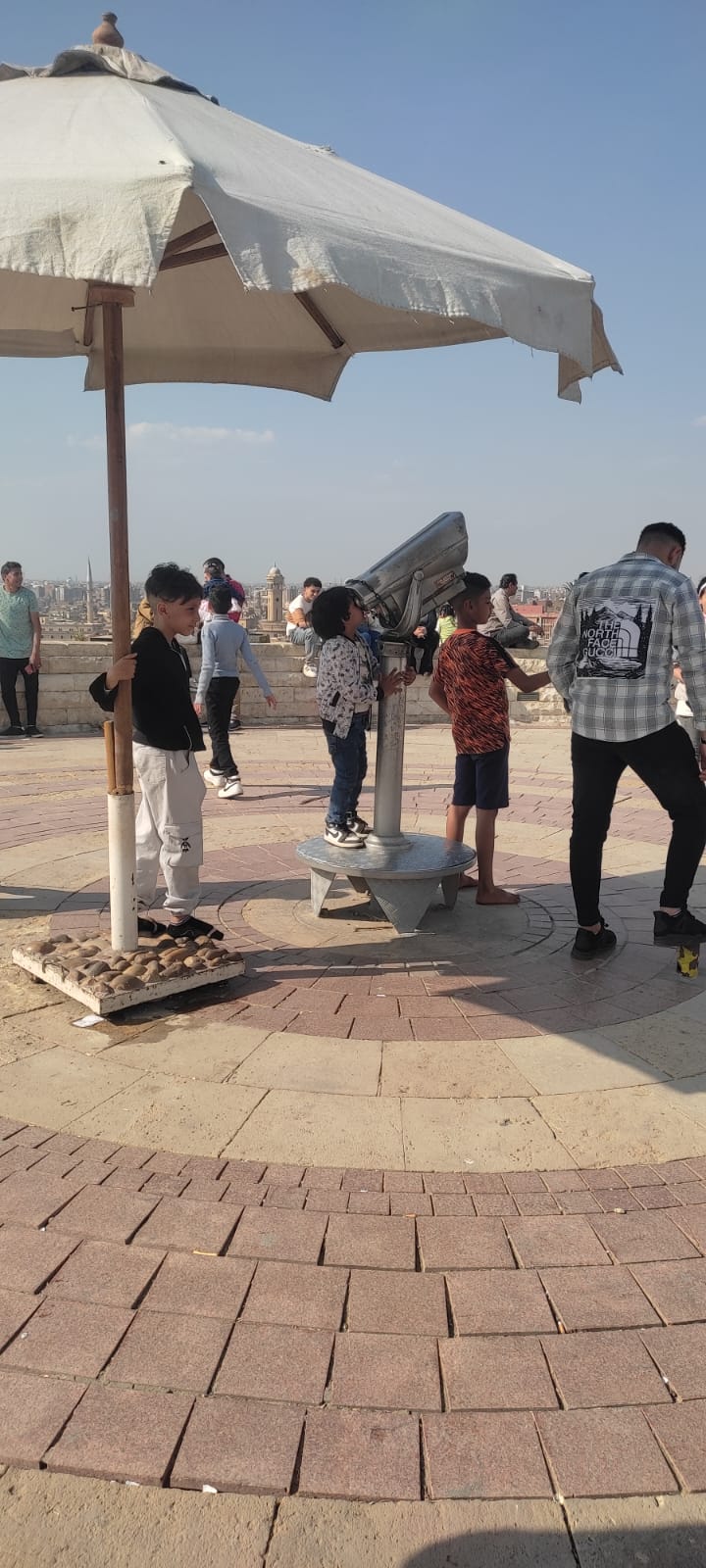 ومن أعلى نقطة داخل حديقة  الأزهر  حيث موقع التليسكوب  الذي يرى جميع أحياء  القاهرة والجيزة.