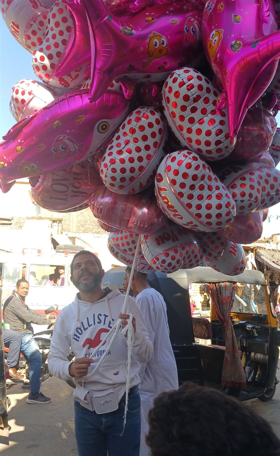 " في المناسبات بقضيها ترحال من أسيوط وحتى إسنا"، وعن سبب تنقله بين المحافظات؛ يقول بائع بالونات الهيليوم: " فيه أماكن لسة متعرفش بالونات الهيليوم، فأنا بحاول أعمل انتشار، وأوزع في كل مكان، عشان المكسب".