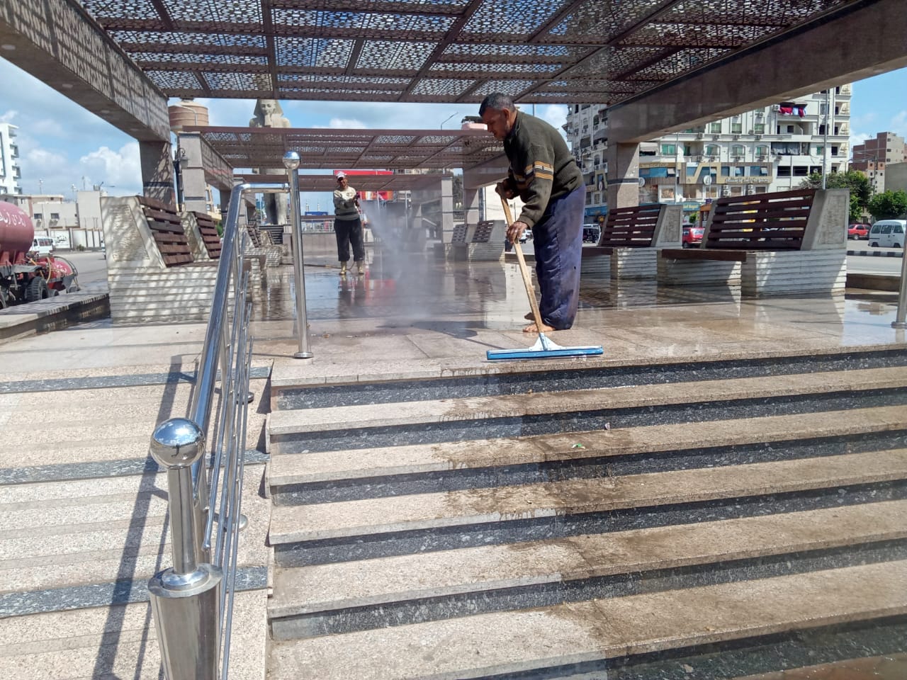 ومن جانبه اوضح ،محمد حمص رئيس جهاز نظافة وتجميل مدينة المنصورة وضواحيها انه بمشاركة احمد حمدي وكيل جهاز النظافة والتجميل بالمنصورة والمهندس خالد جلال مدير عام المركبات والمهندس فهمي علام مدير المتابعة بالجهاز واكرم السقا ومحمد فارس بجهاز النظافه حيث تم غسيل الارصفه بشوارع مدينه المنصوره وري الحدائق المفتوحه بشارع الجيش ورفع كفاءه النظافه العامه بالحدائق العامه في كل شجره الدر وصباح الخير يا مصر وعروس النيل وتم تشغيل المكنسيات بشارع الجمهوريه والجيش وقناه السويس.