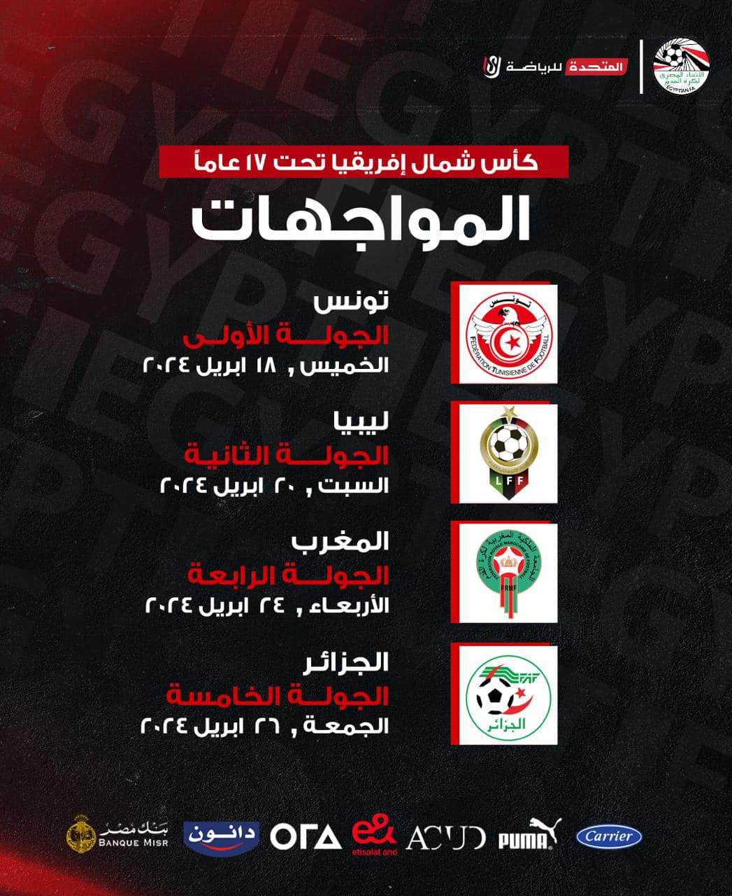 ويقص منتخب مصر للناشئين بقيادة مدربه أحمد الكاس شريط مبارياته بمواجهة تونس يوم 18 أبريل ثم ليببا ثم المغرب ثم الجزائر.