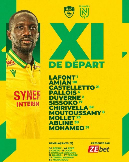 تشكيل نانت الرسمي أمام لوهافر في الدوري الفرنسي