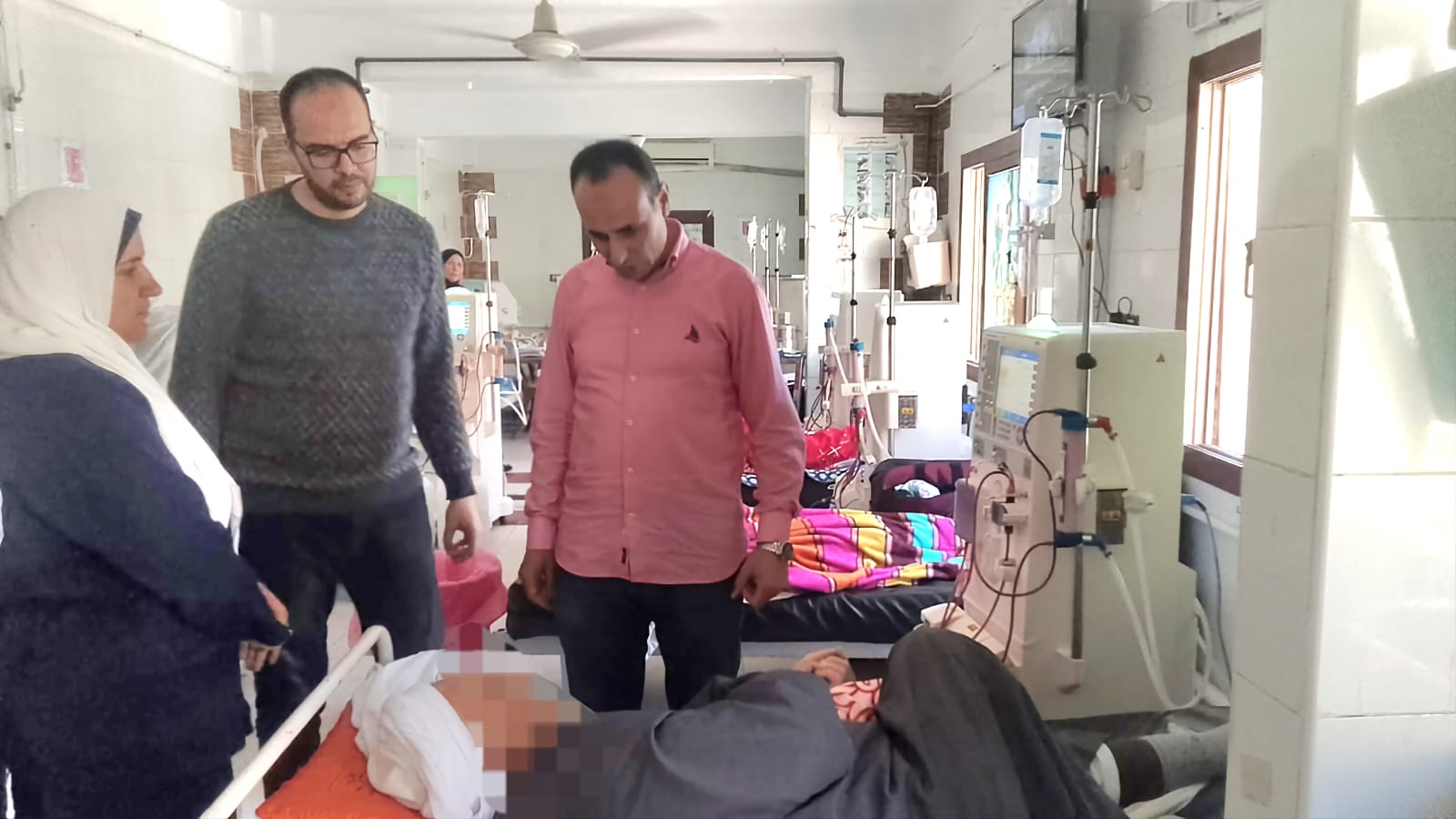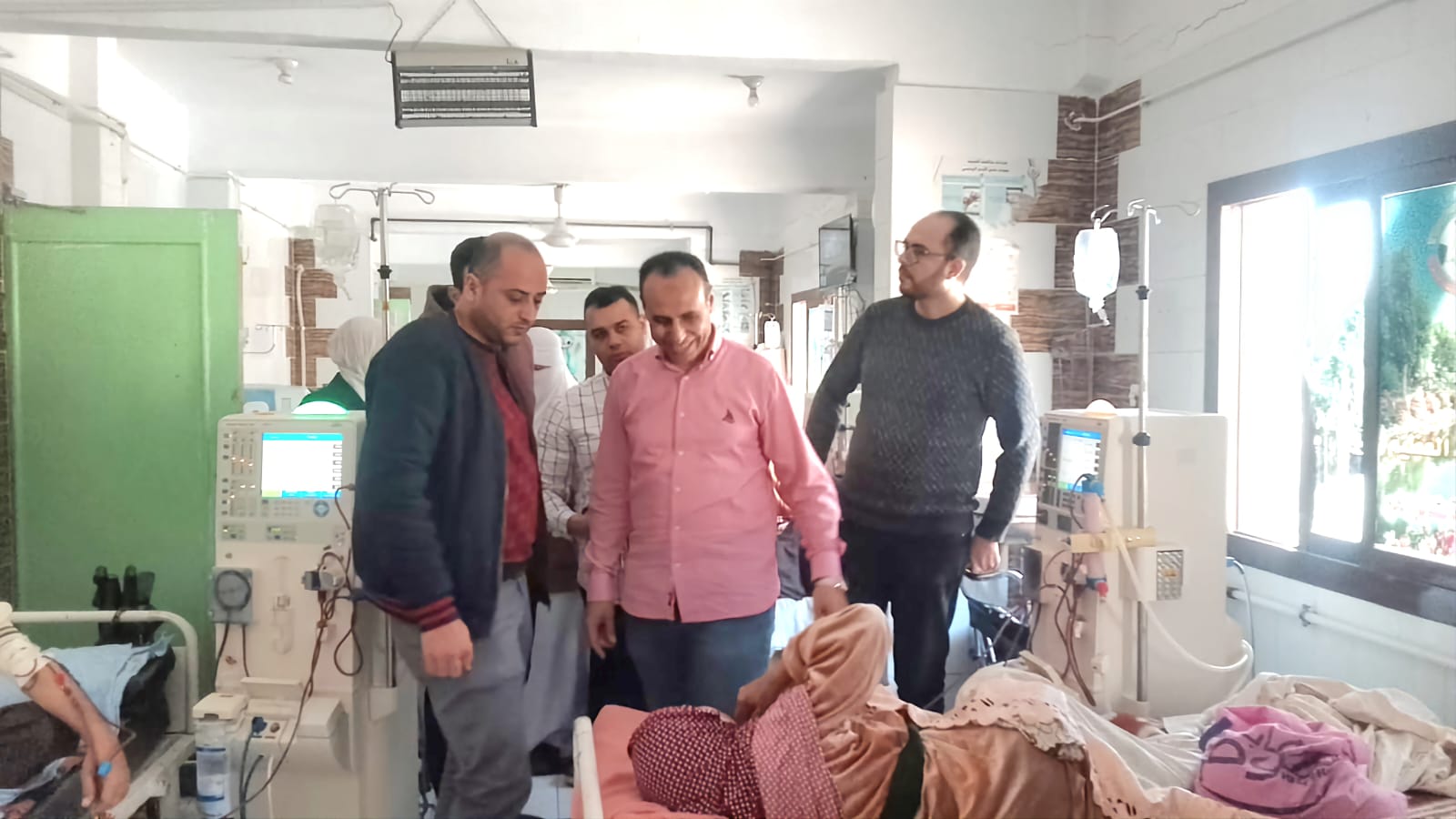 كما قام بتفقد العمل بقسم الكلى وقدم التهنئة بالعيد لجميع المرضى وإستمع للمرضى وذويهم عن رأيهم فى الخدمة المقدمة وشكر تمريض الكلى على أدائهم.