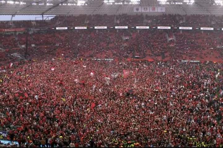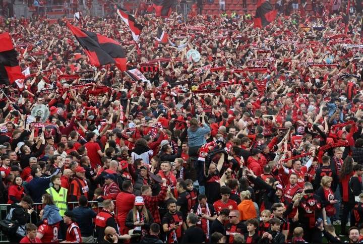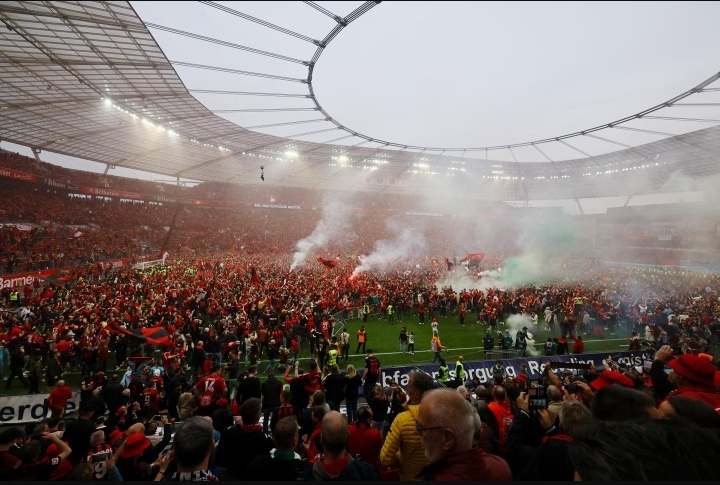 احتفلت جماهير باير ليفركوزن مع اللاعبين والجهاز الفني على أرضية ملعب باي أرينا، بعد التتويج بلقب الدوري الألماني الممتاز للمرة الأولى في تاريخ النادى.