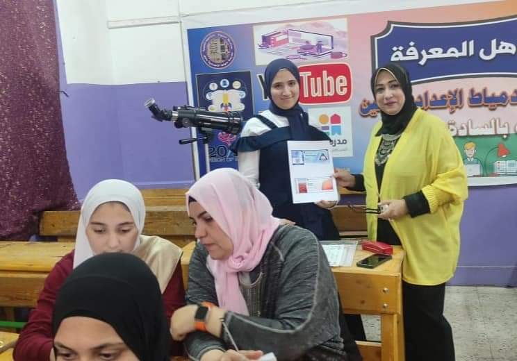 جاء ذلك بحضور أمانى طراف مدير إدارة الموهوبين والتعلم الذكي ومايسة عايد و دنيا الأمير موجهتي مادة العلوم والدكتورة صبرين شتيوي مسئول التعلم الذكى بالمديرية والدكتورة شيماء السيد صبح مسئول الموهوبين بالمديرية.