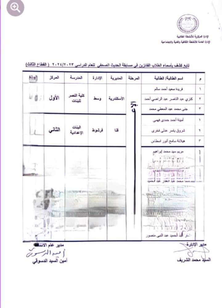 أعلنت وزارة التربية والتعليم فوز ممثلي مديرية التعليم والتعليم بمحافظة قنا بثلاث مراكز وزارية في مسابقات إدارة الصحافة والإعلام ، حيث أعلنت الوزارة حصول مدرسة الشيخ حاكم الإعدادية التابعة لإدارة نقادة التعليمية على المركز الأول في مسابقة القصة القصيرة ، و فوز مدرسة البنات الإعدادية التابعة لإدارة فرشوط التعليمية بالمركز الثاني في مسابقة الحديث الصحفي ، وكذلك أعلن حصول مدرسة نقادة الثانوية التجارية بنات على المركز الثالث في منافسات الإذاعة المدرسية .