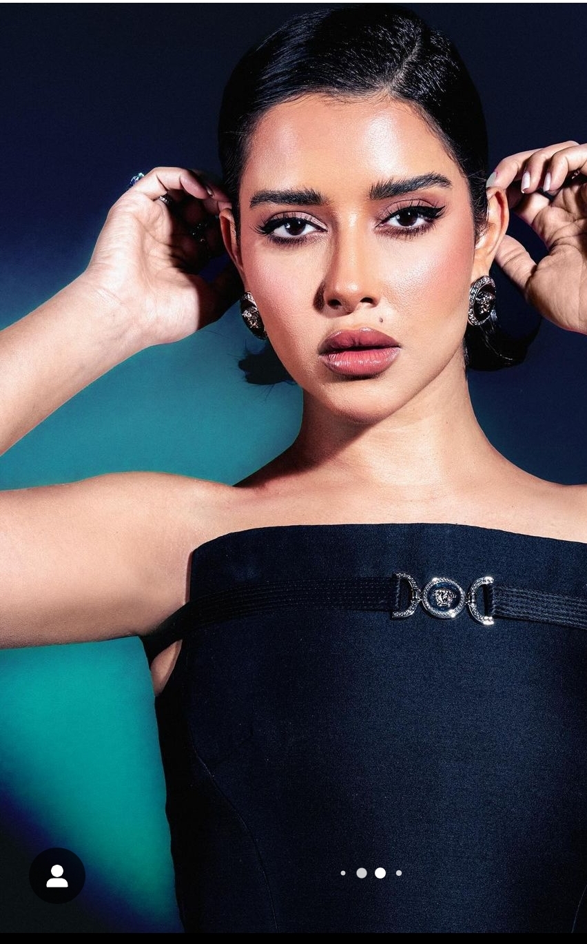 أما من الناحية الجمالية، اعتمدت تسريحة شعر جذابة متناغمة مع إطلالتها ووضعت مكياجًا جذابًا مرتكزًا على الألوان الترابية مع تحديد عينيها بالكحل والماسكرا السوداء ولون النود في الشفاه مما عكس سحر ملامحها.
