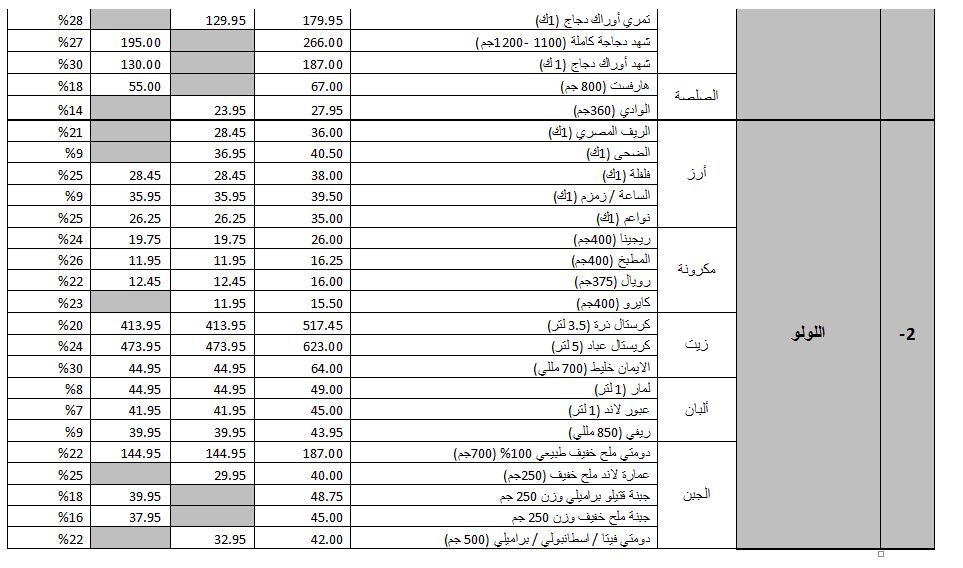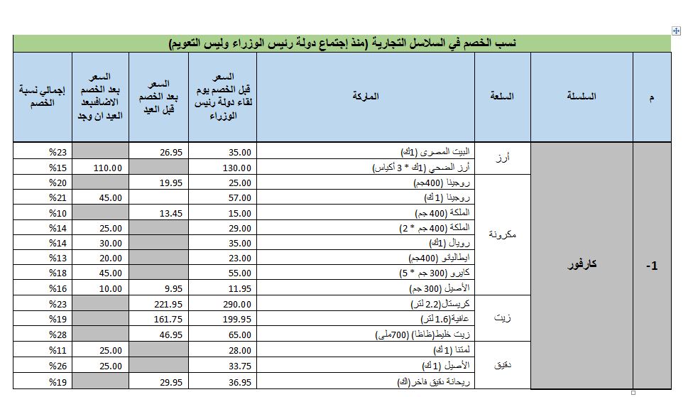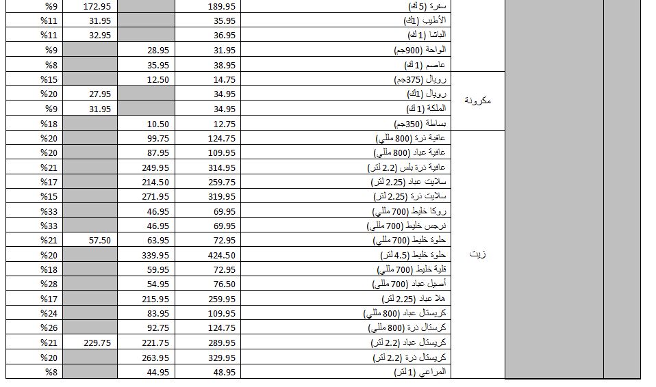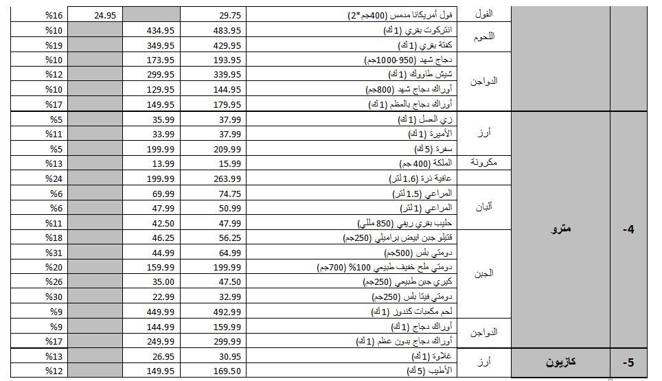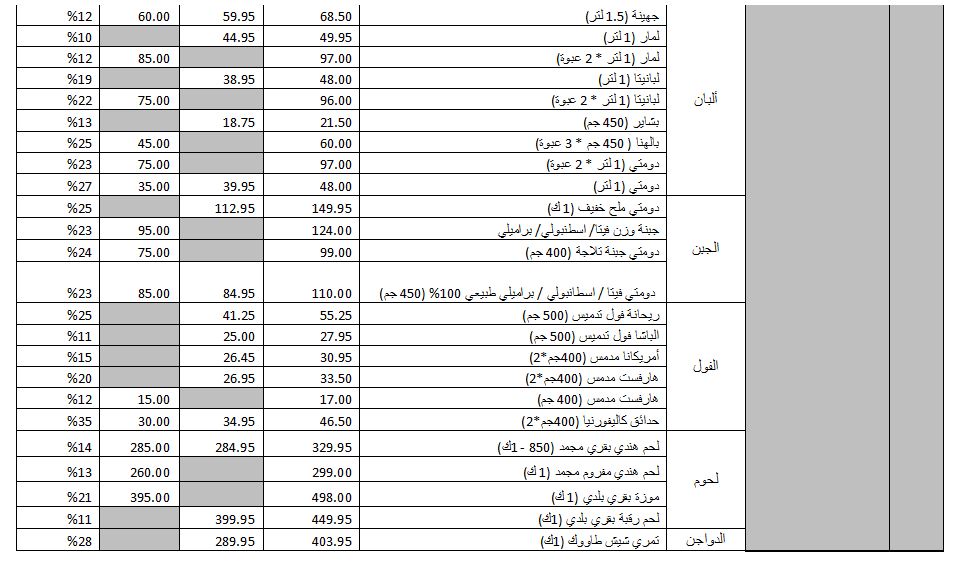 أسعار السلع الغذائية بعد مبادراة الحكومة