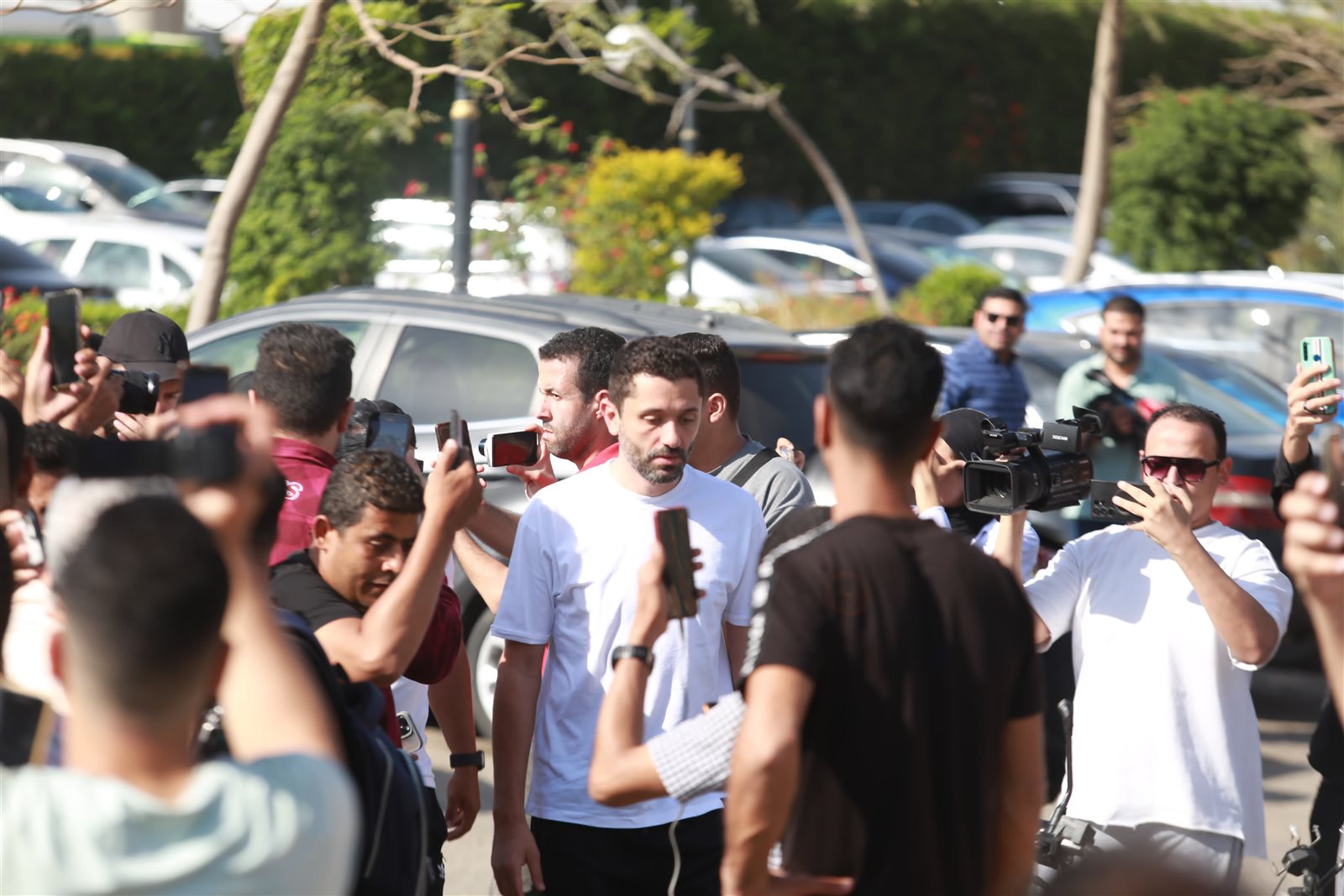 كريم ومحمد محمود عبدالعزيز من جنازة الفنان صلاح السعدني