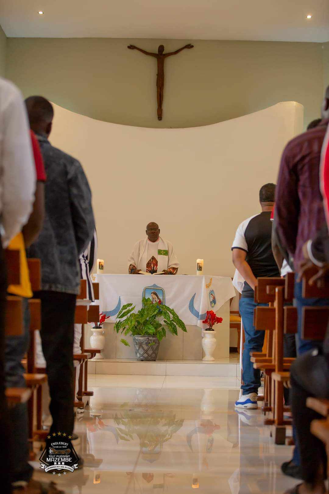 تواجد لاعبو الفريق الأول لكرة القدم بنادي مازيمبي الكونغولي في إحدى الكنائس للدعاء قبل مواجهة الأهلي بنصف نهائي دوري أبطال إفريقيا.