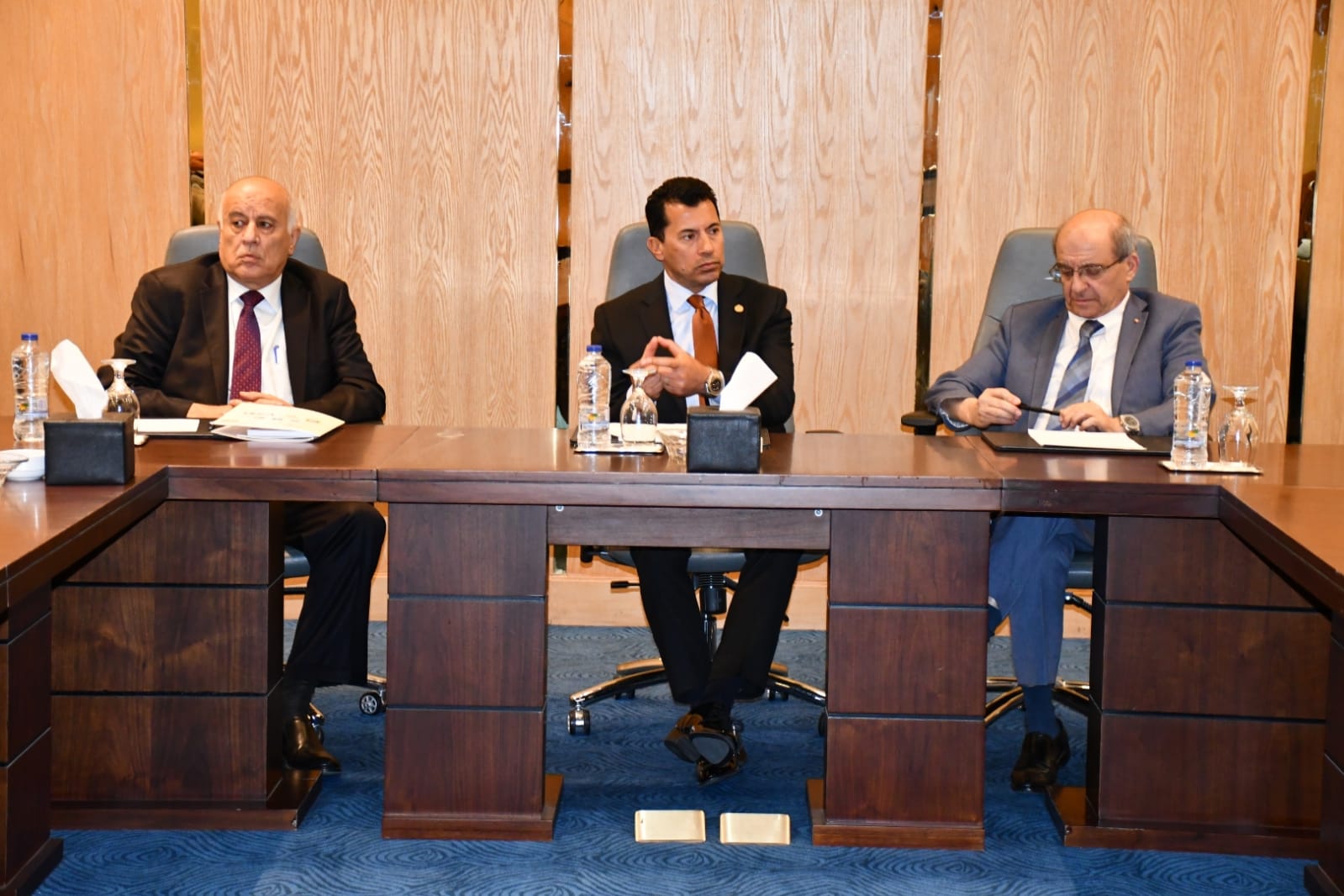 التقى الدكتور أشرف صبحي وزير الشباب والرياضة، ورئيس المكتب التنفيذي لمجلس وزراء الشباب والرياضة العرب، نظيره اللبناني الدكتور جورج كلاس، وكذلك الفلسطيني الفريق جبريل الرجوب رئيس المجلس الأعلى للشباب والرياضية بدولة فلسطين، للتباحث حول عدد من ملفات العمل المشترك.