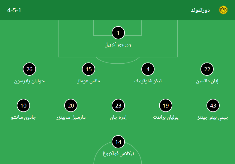 الدفاع: شلوتيربيك - سانشو - فولكروج – هوميلز.