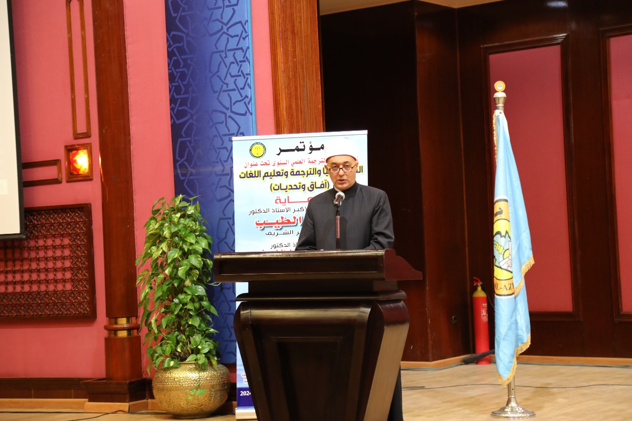 جاء ذلك بحضور الدكتور محمد الضويني وكيل الأزهر الشريف، الدكتور سلامة داود رئيس جامعة الأزهر، الشيخ أيمن عبد الغني رئيس قطاع المعاهد الأزهرية، السادة نواب رئيس جامعة الأزهر الشريف، الدكتور خالد محمد عباس عميد كلية اللغات والترجمة رئيس المؤتمر، وعدد من عمداء ووكلاء وأعضاء هيئة التدريس بجامعة الأزهر.