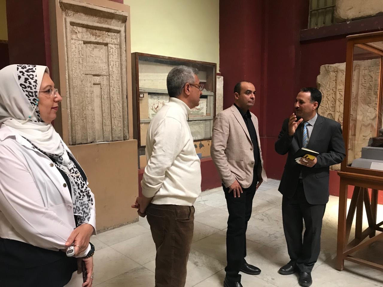 رافقه خلال الجولة مؤمن عثمان رئيس قطاع المتاحف، والدكتور علي عبد الحليم مدير عام المتحف المصري بالتحرير، ووكلاء المتحف.