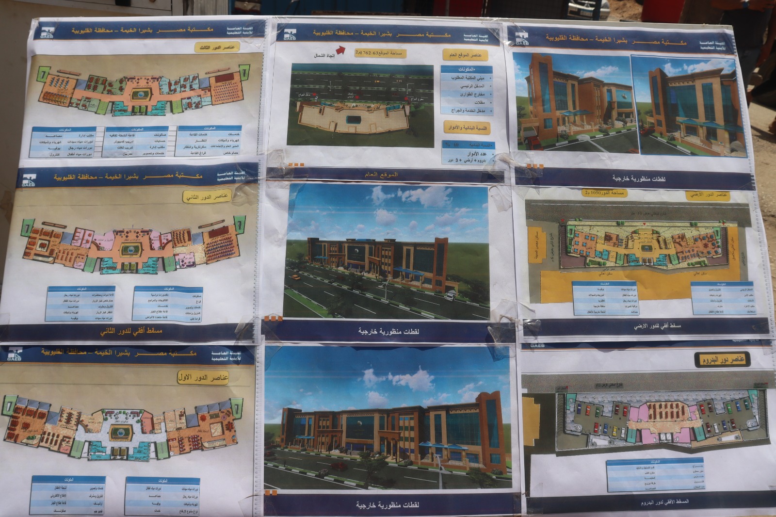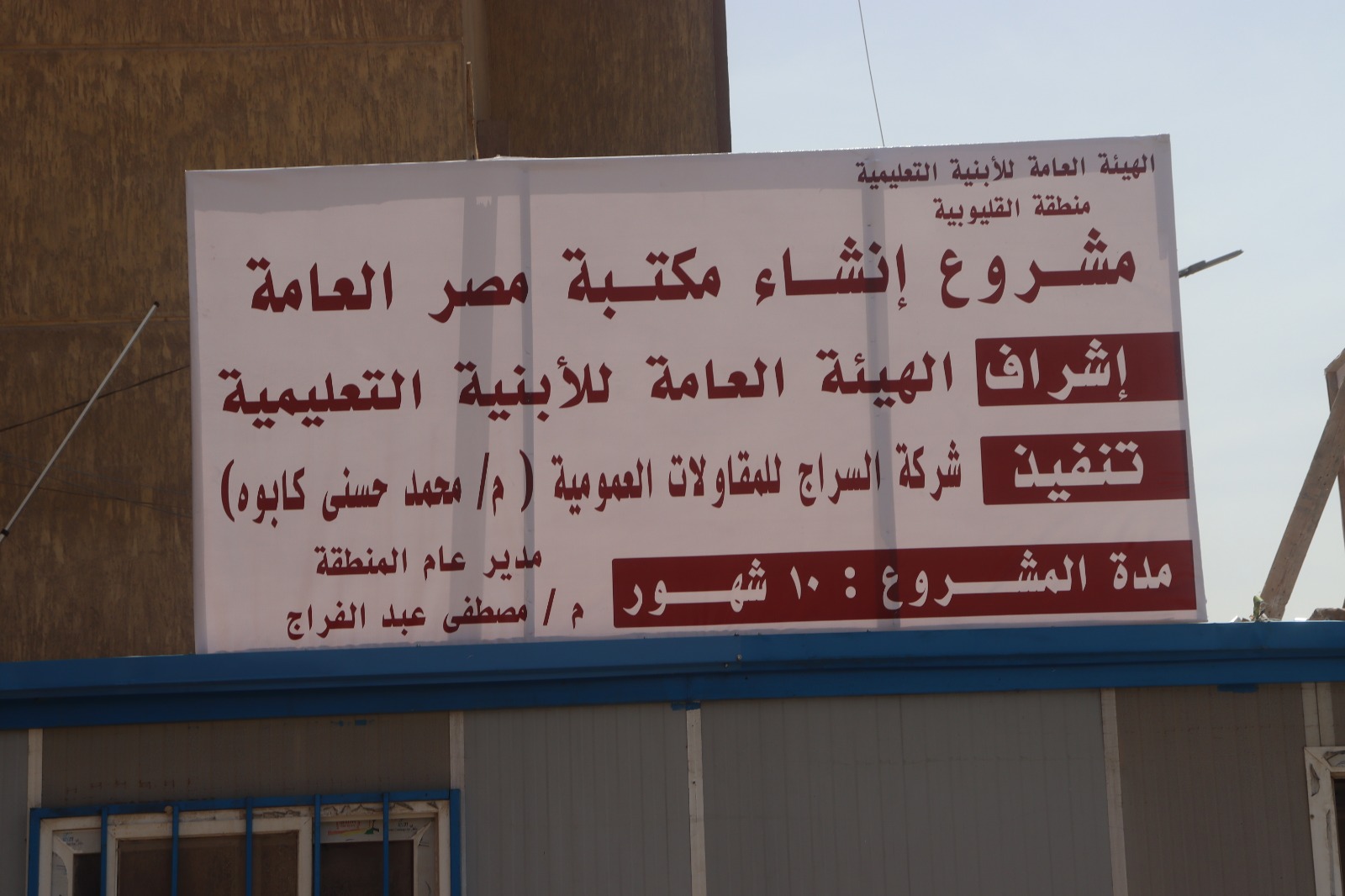 وخلال الجولة تفقد المحافظ أعمال الحفر والأساسات، والتي تقام على مساحة 1762.6م2 تقريبا على طريق ترعة الشرقاوية بميت نما بحي غرب شبرا الخيمة بتكلفة إجمالية حوالي 60 مليون جنيه تقريباً ، وقد تم تمويل المكتبة من وزارة التخطيط والتنمية الاقتصادية بمبلغ 11 مليون جنيه كمرحلة أولى بناءً على طلب محافظة القليوبية بإنشائها .