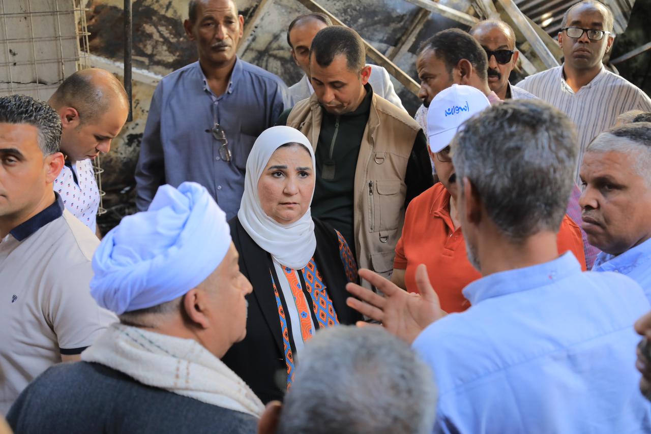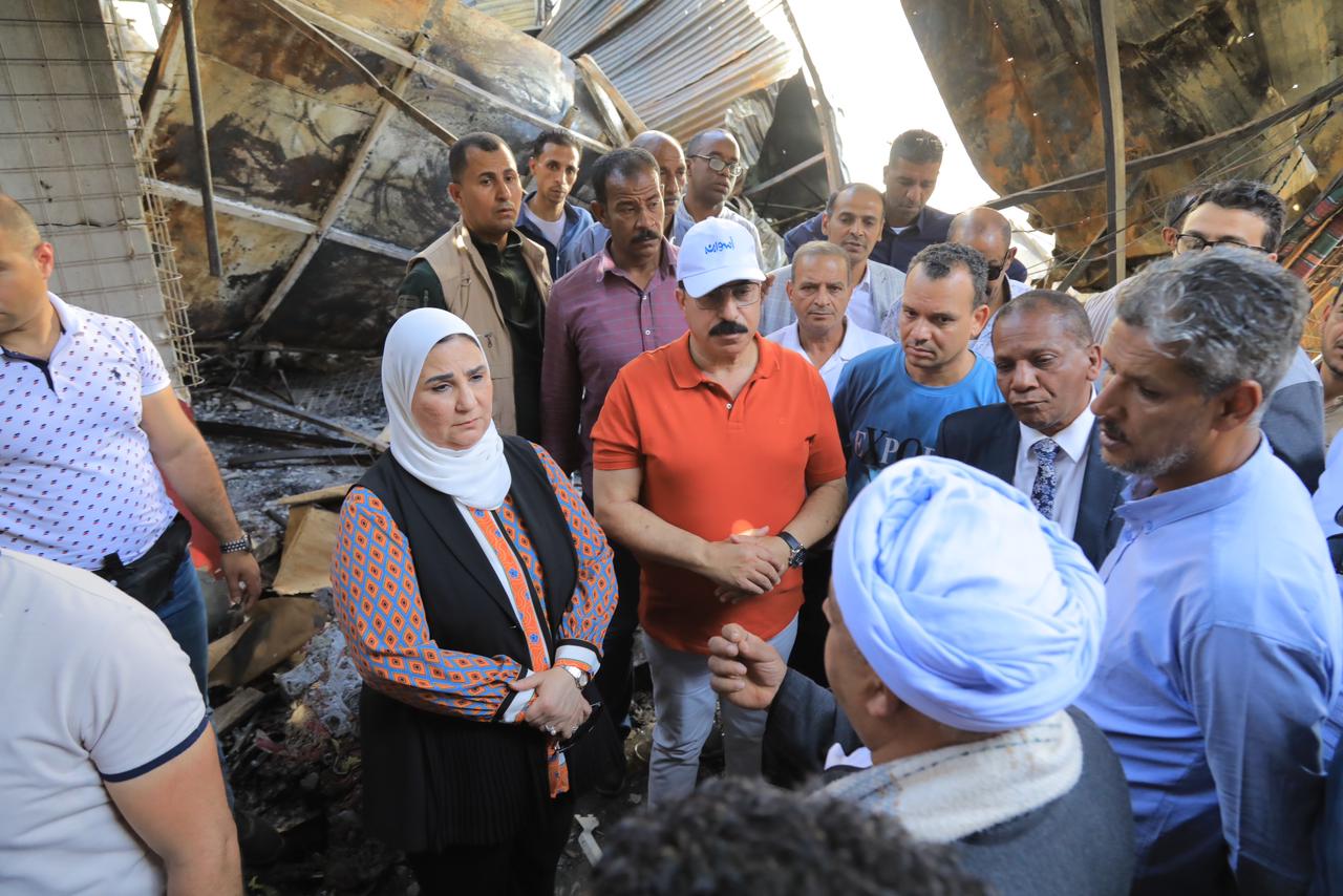 وزيرة التضامن الاجتماعي ومحافظ أسوان يتفقدان مول "فيلة" بعد حريقه
