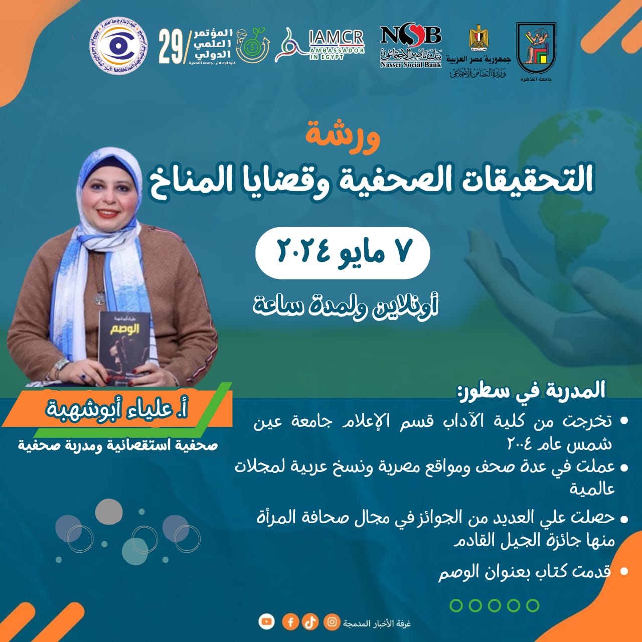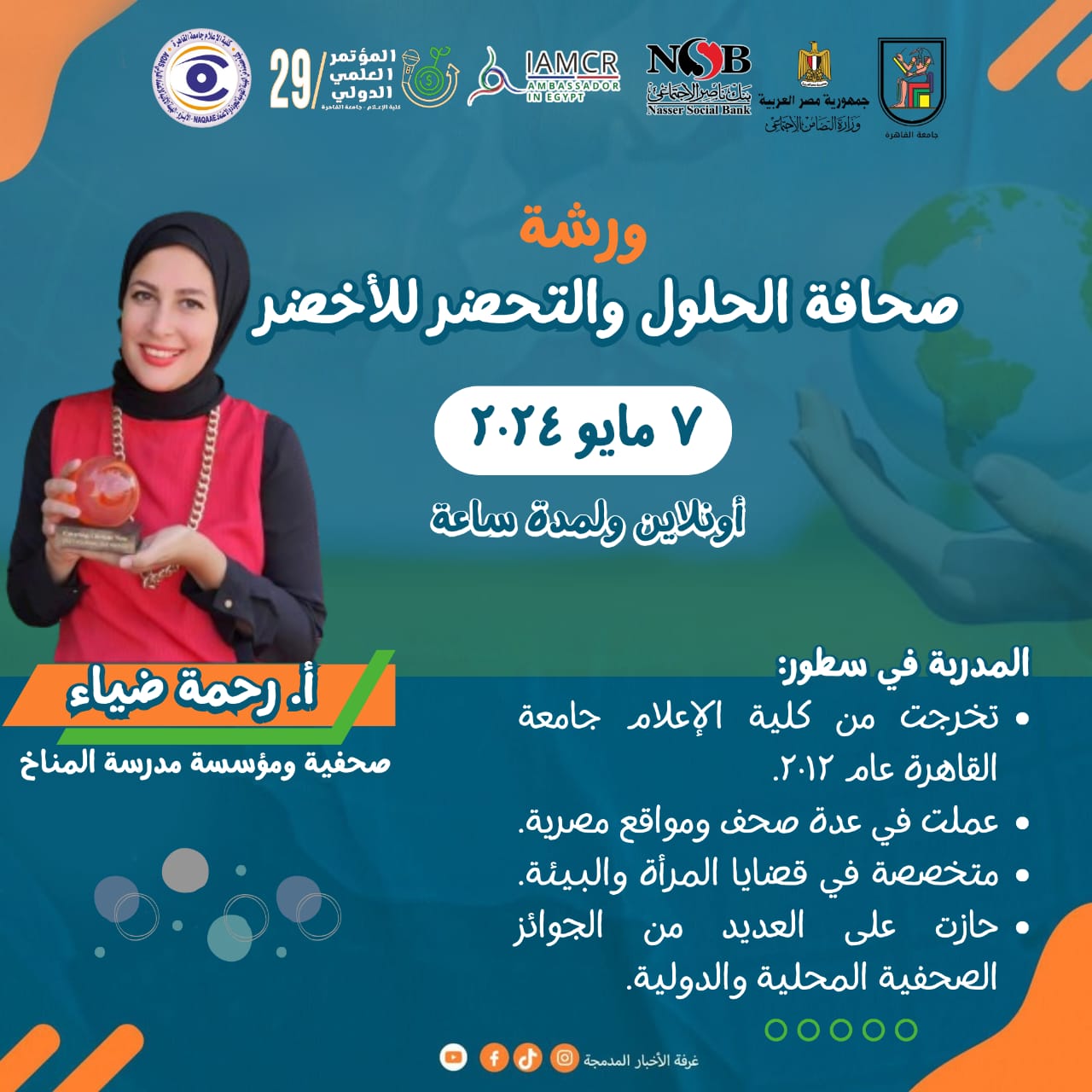 تبحث فاعليات المؤتمر الدولي الـ ٢٩ لكلية الإعلام بجامعة القاهرة، أهمية الدور التوعوي لوسائل الإعلام في مواجهة مخاطر التغيرات المناخية والبيئية، وأهمية التحول نحو الاقتصاد الأخضر خلال السنوات القليلة القادمة.