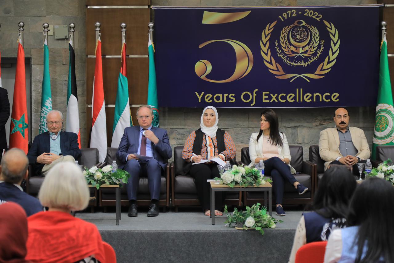 ومن جانب آخر قامت الدكتورة رانيا المشاط، وزيرة التعاون الدولي، والدكتورة نيفين القباج، وزيرة التضامن الإجتماعى، واللواء أشرف عطية محافظ أسوان، بتسليم شهادات التخرج للمتدربين من أبناء المحافظة والدول الشقيقة عقب إجتيازهم للبرامج التدريبية الخاصة بتصميم الجرافيك، والتسويق الإلكترونى، والتى حصلوا عليها داخل أروقة الأكاديمية العربية للعلوم والتكنولوجيا والنقل البحرى.