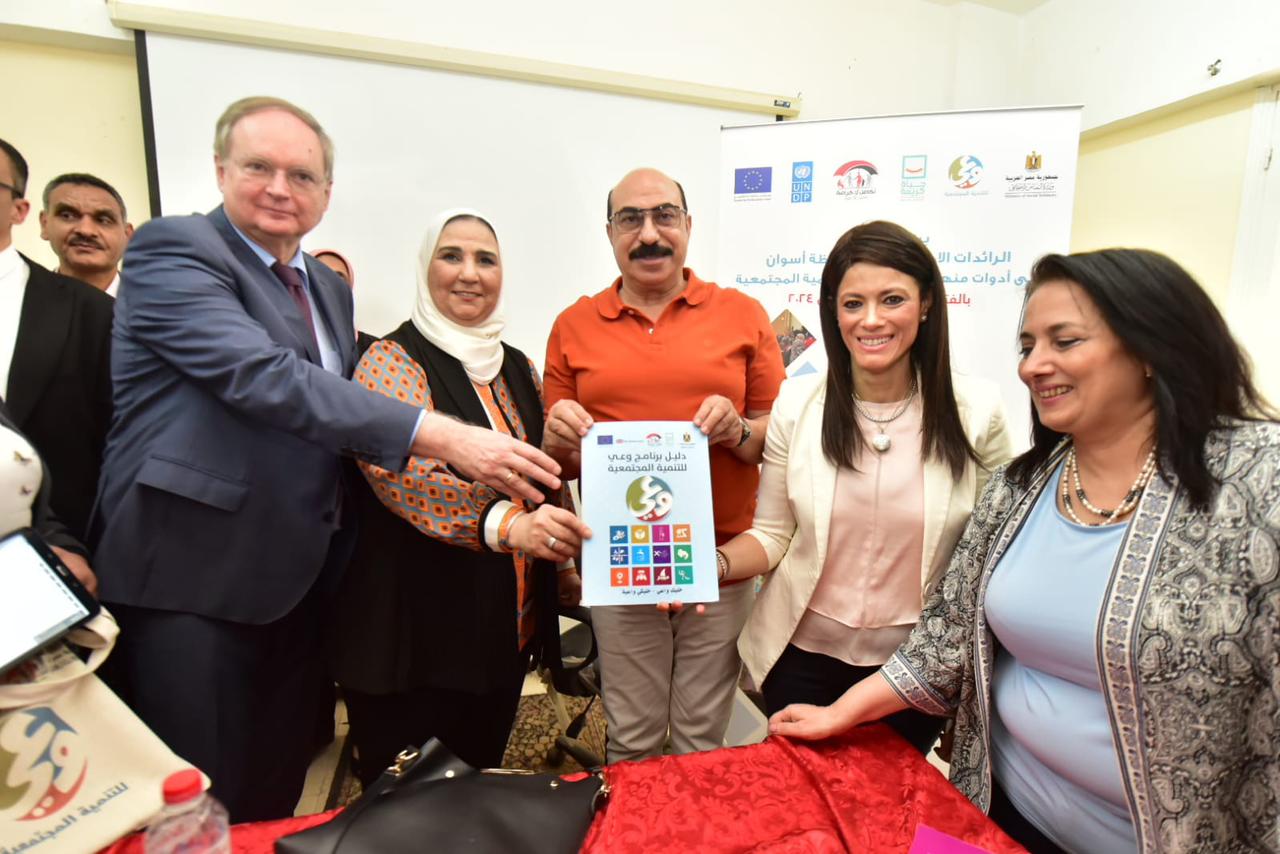 وفي ذات السياق، تفقدت وزيرة التعاون الدولي، برنامج تعزيز القدرات المؤسسية وقدرات الموارد البشرية لوزارة التضامن الاجتماعي، المنفذ بالتعاون مع برنامج الأمم المتحدة الإنمائي والاتحاد الأوروبي، وتنفيذ الدورات التدريبية للرائدات الاجتماعيات بمحافظة أسوان على أدوات منهج برنامج "وعي للتنمية المجتمعية".