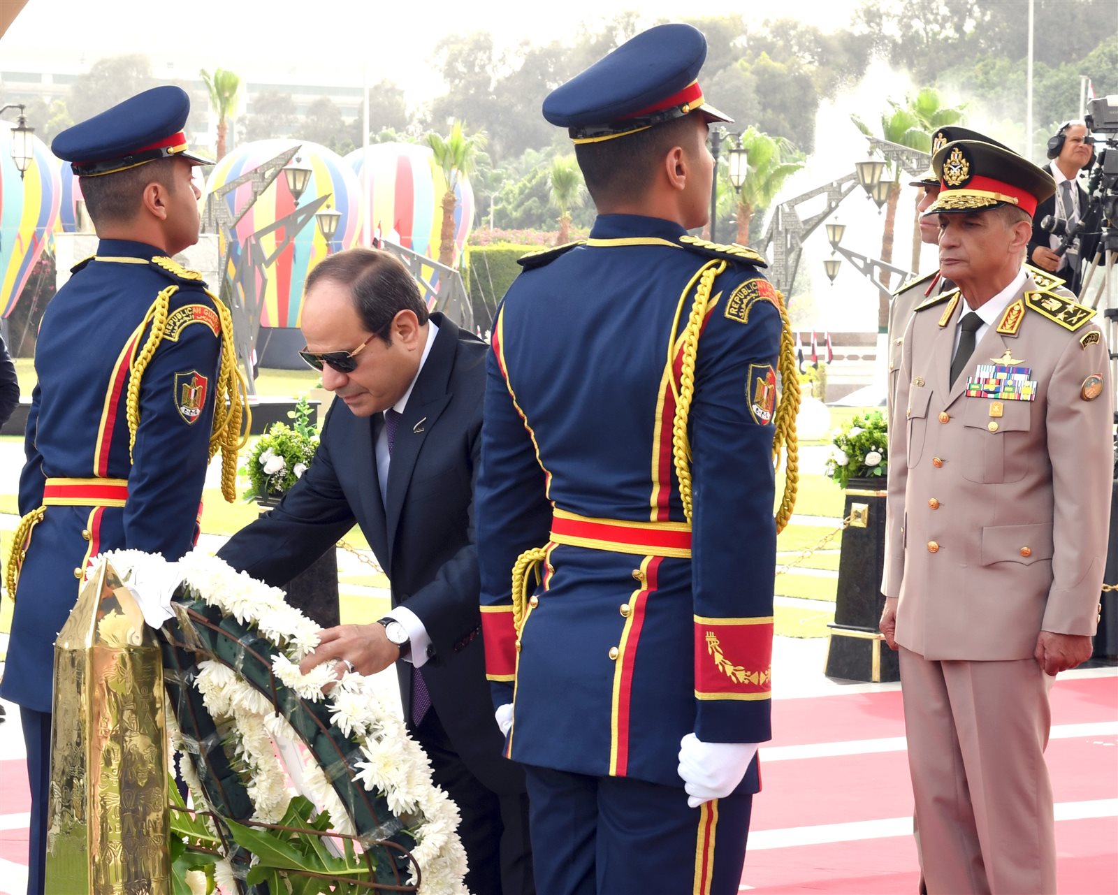 الرئيس السيسي يضع إكليلًا من الزهور على النصب التذكاري للجندي المجهول