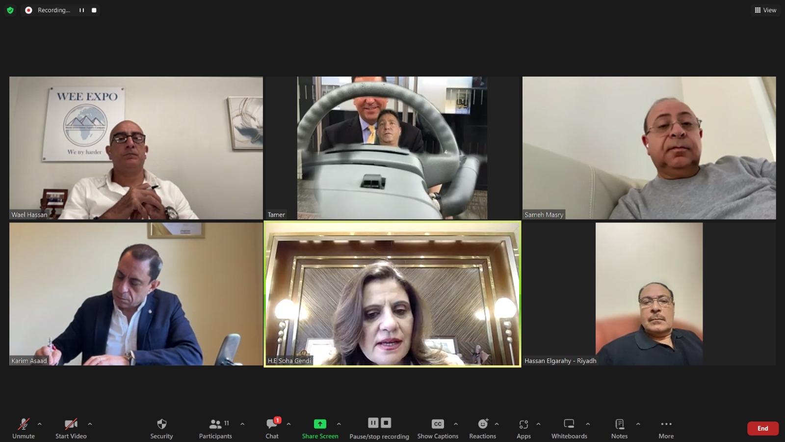 وقد شارك في الاجتماع : كريم أسعد، المؤسس والرئيس التنفيذي لشركة كيمبكس kempex international وشركة kempton ltd& Brooks، عادل بولس، رجل الأعمال ورئيس شبكة الأعمال المصرية الكندية، د. حسن الجراحي، رجل الأعمال بالسعودية، ورئيس مجلس إدارة "الشركة المصرية لطباعة نماذج المعلومات"، وتامر هدايت، رئيس مجلس إدارة شركة "نت سينك"، والمصرفي وائل حسن، مستشار التمويل العقاري السابق في بنك جي بي مورجان تشيس، والمهندس سامح المصري، رئيس مجموعة شركات تماس في دولة الإمارات.