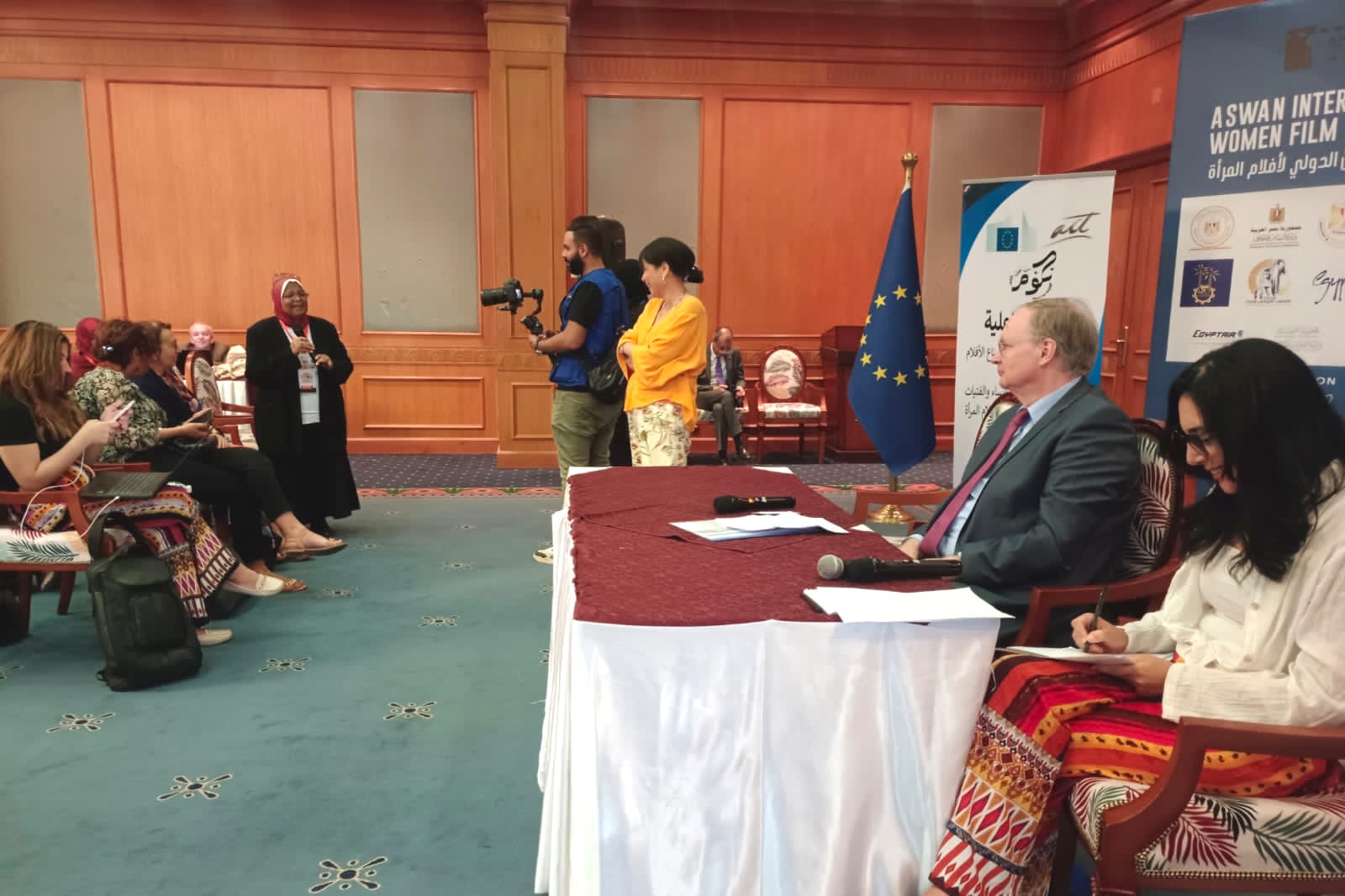 واعتبر السفير أن هذه النقطة مهمة جدا ويجب تتدخل  الأفلام لطرح حلول لها وخاصة أفلام الورش مع قضايا المرأة المختلفة.