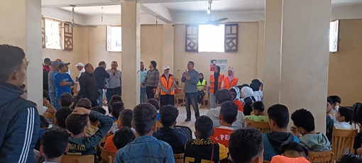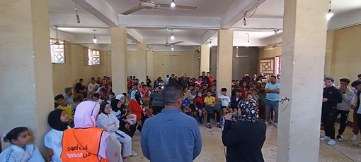 وفى القافلة الرياضية تم اجراء  الاختبارات البدنية والنفسية وتم تقسيم أطفال القرية وعددهم 193 طفل إلى خمس مجموعات لتطبيق القياسات البدنية والنفسية