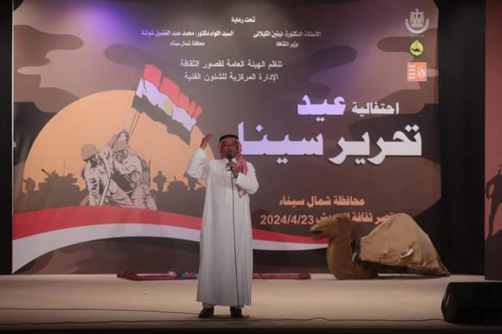 من جانبه، رحب محافظ شمال سيناء، بوزيرة الثقافة، وثمن حرصها على الحضور للاحتفاء بهذا اليوم المميز، مؤكدًا أهمية الثقافة في نشر الوعي، ومواجهة الأفكار المتطرفة الهدامة، وأشاد بجهود وزارة الثقافة إزاء تفعيل هذه الأهداف بجميع أرجاء  سيناء.